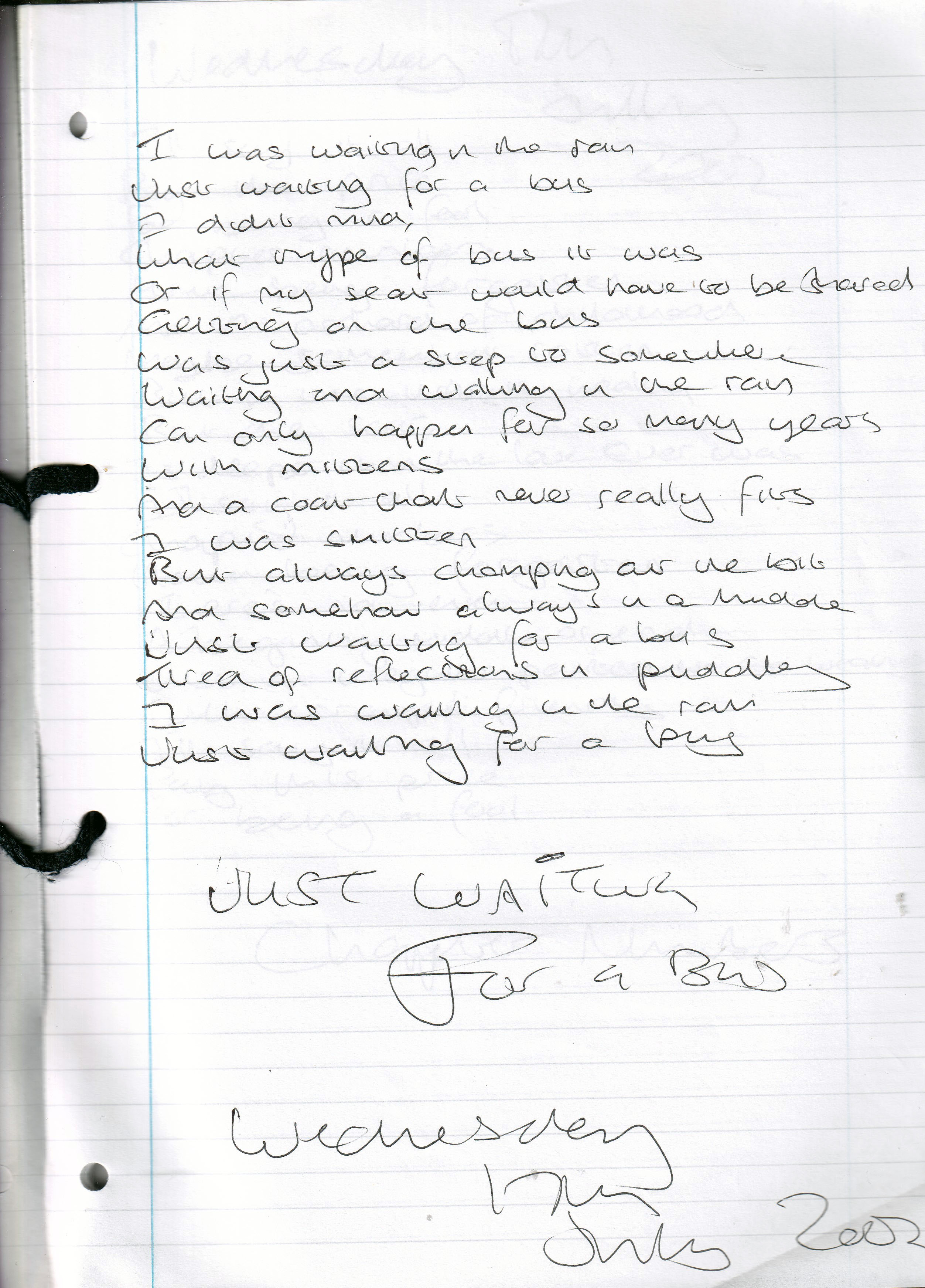 Just Waiting For a Bus – Written Wednesday 17th July 2002 (Aged 27)