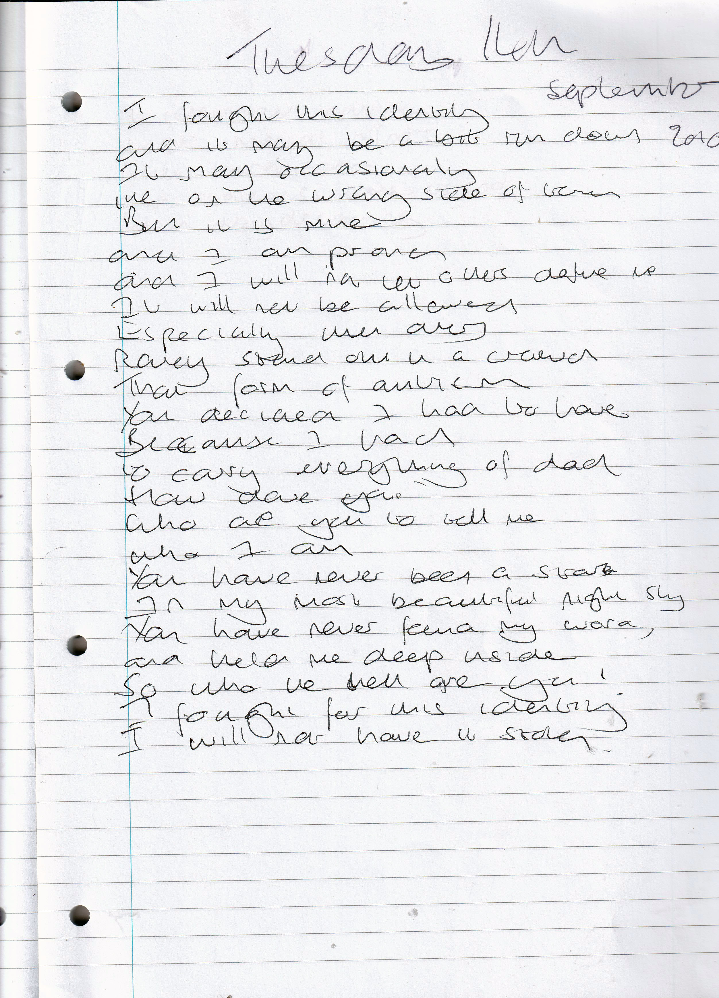 Identity Theft – Written Tuesday 14th September 2010 (Aged 35)
