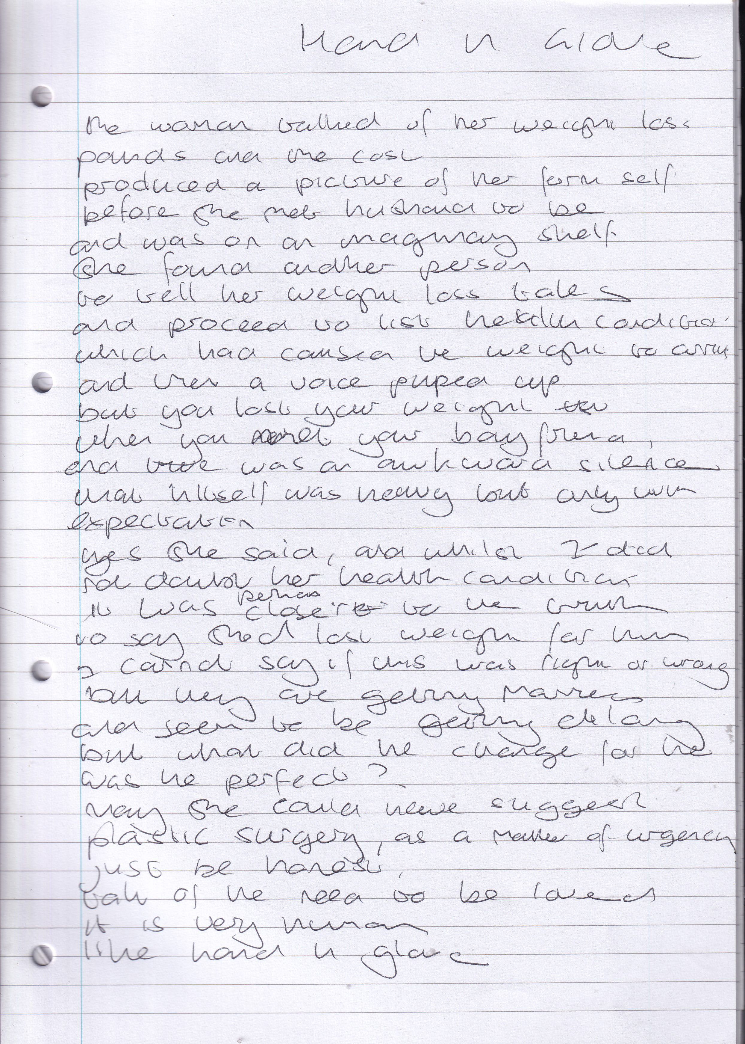 Hand in Glove – Written January 2013 (Aged 37)