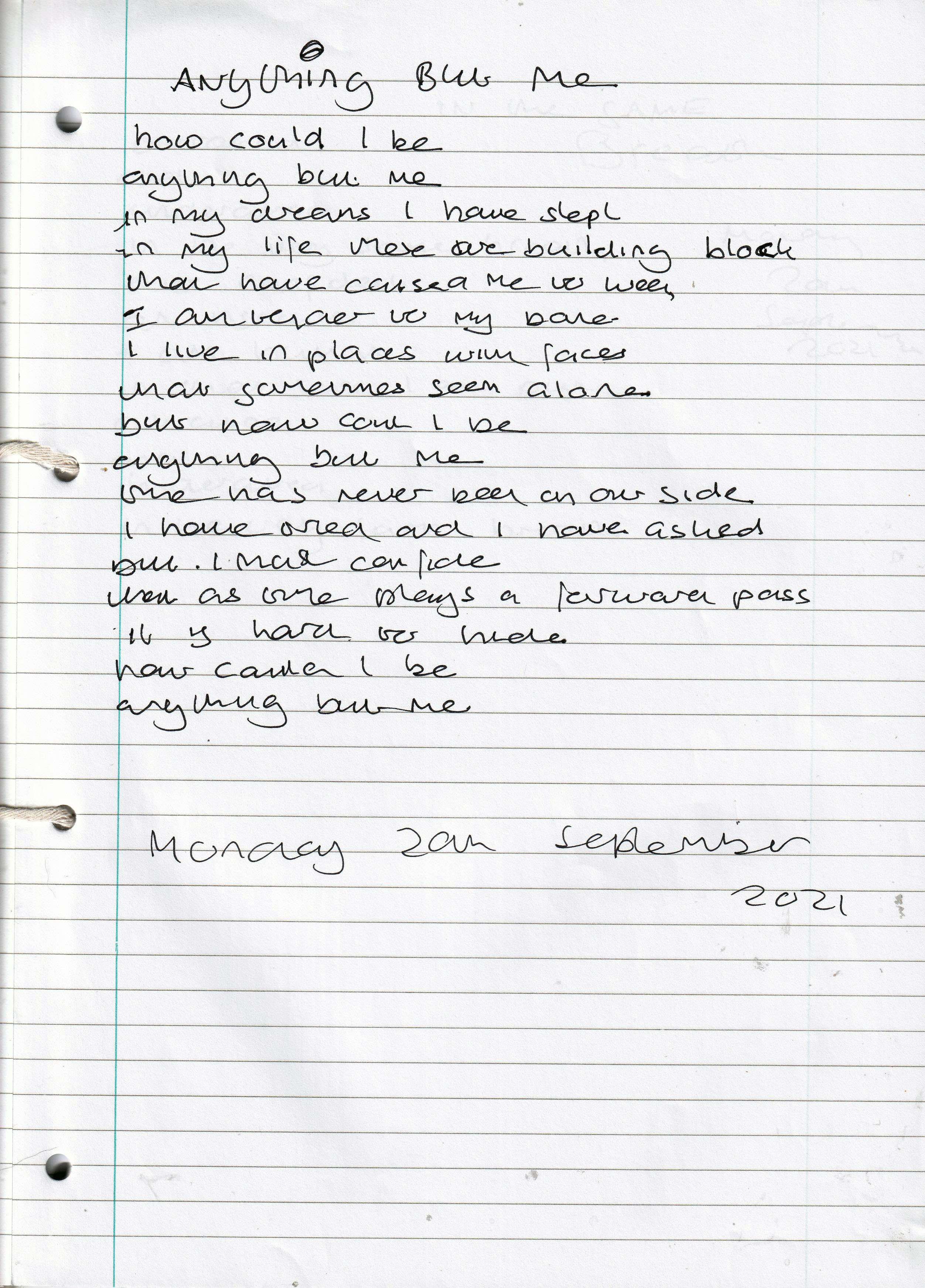 Anything But Me – Written Monday 20th September 2021 (Aged 46)