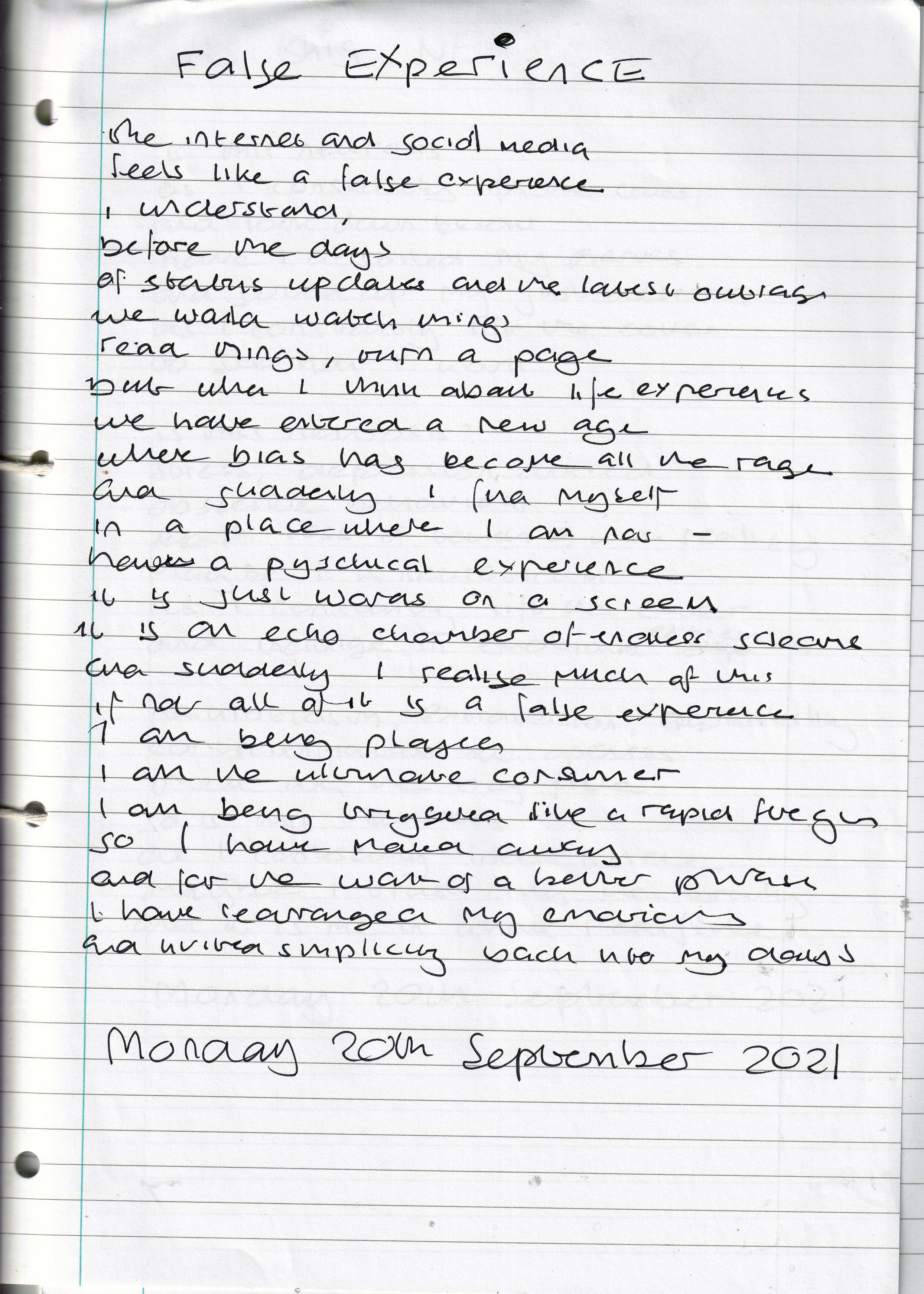 False Experience – Written Monday 20th September 2021 (Aged 46)