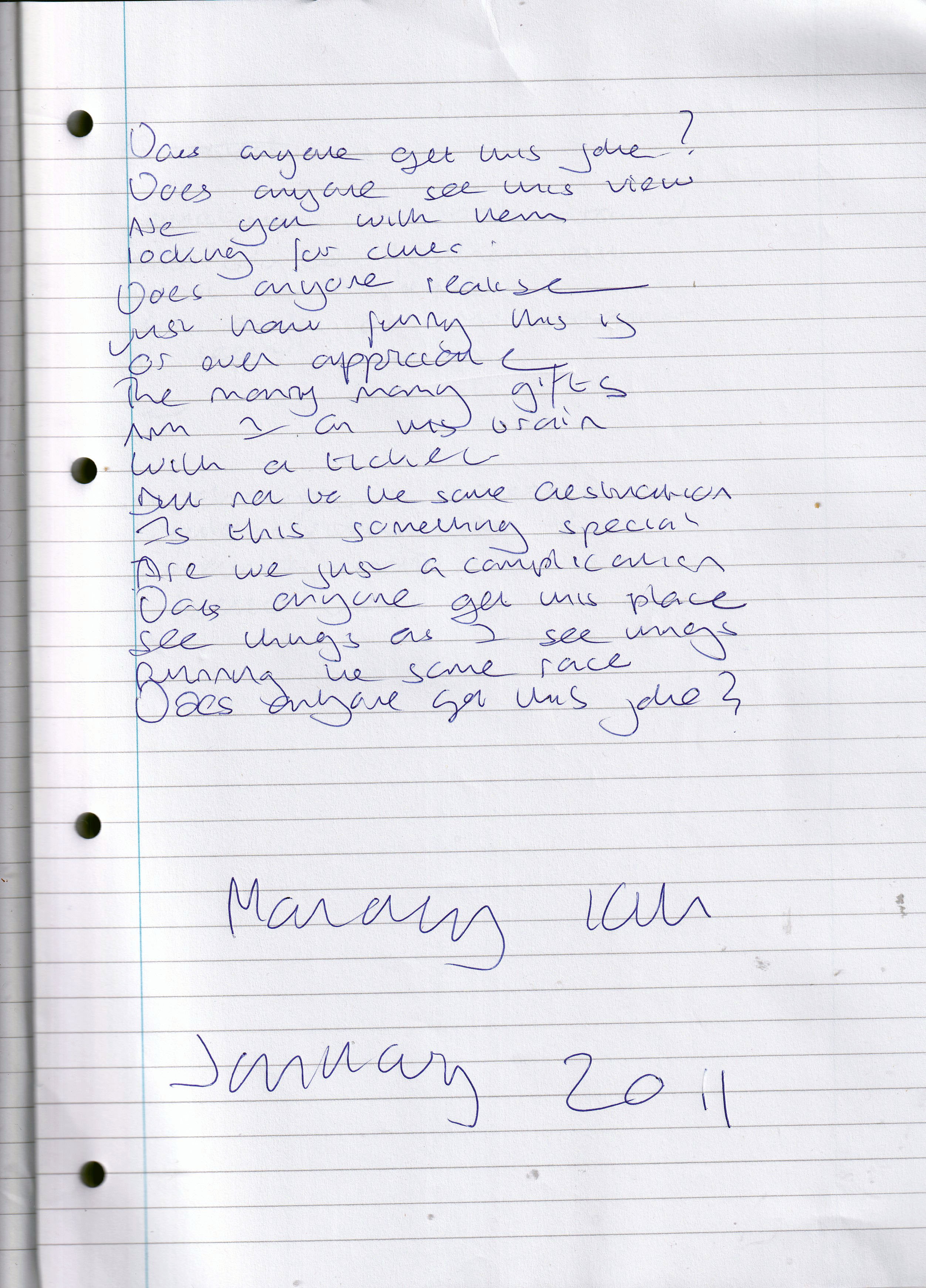 Does Anyone Get This Joke? – Written Monday 10th January 2011 (Aged 35)