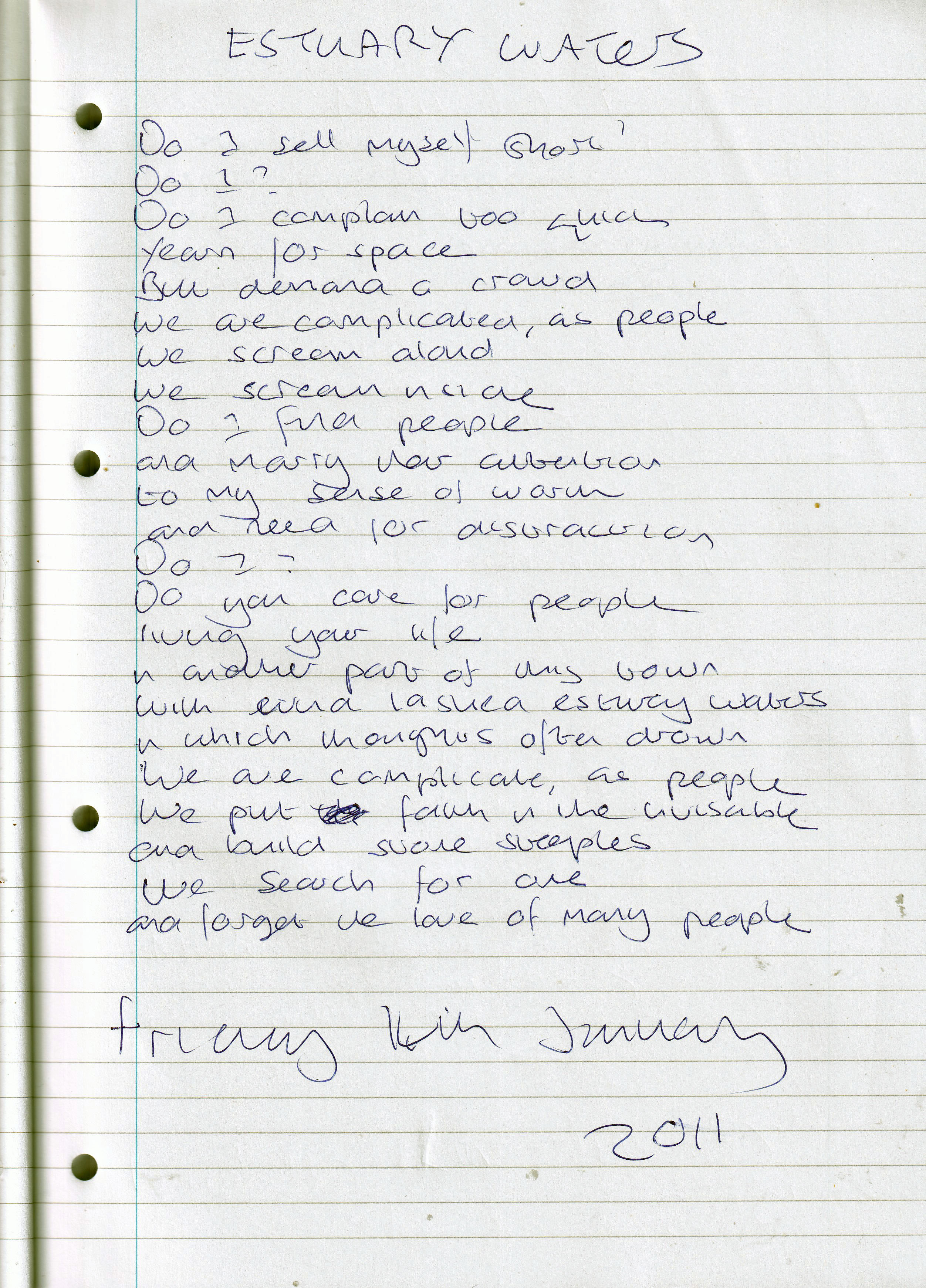 Estuary Waters – Written Friday 14th January 2011 (Aged 35)
