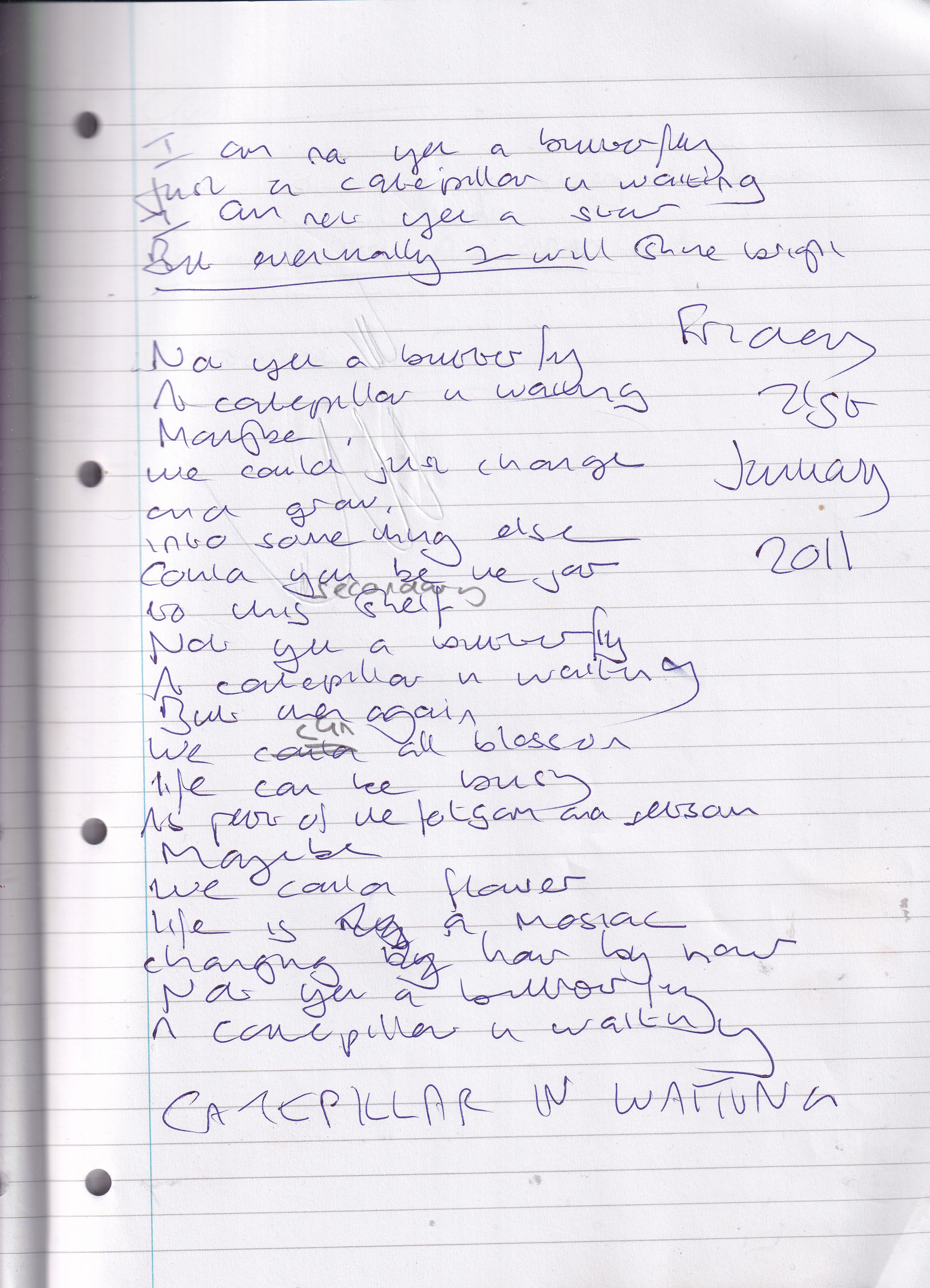 Caterpillar in Waiting – Written Friday 21st January 2011 (Aged 35)