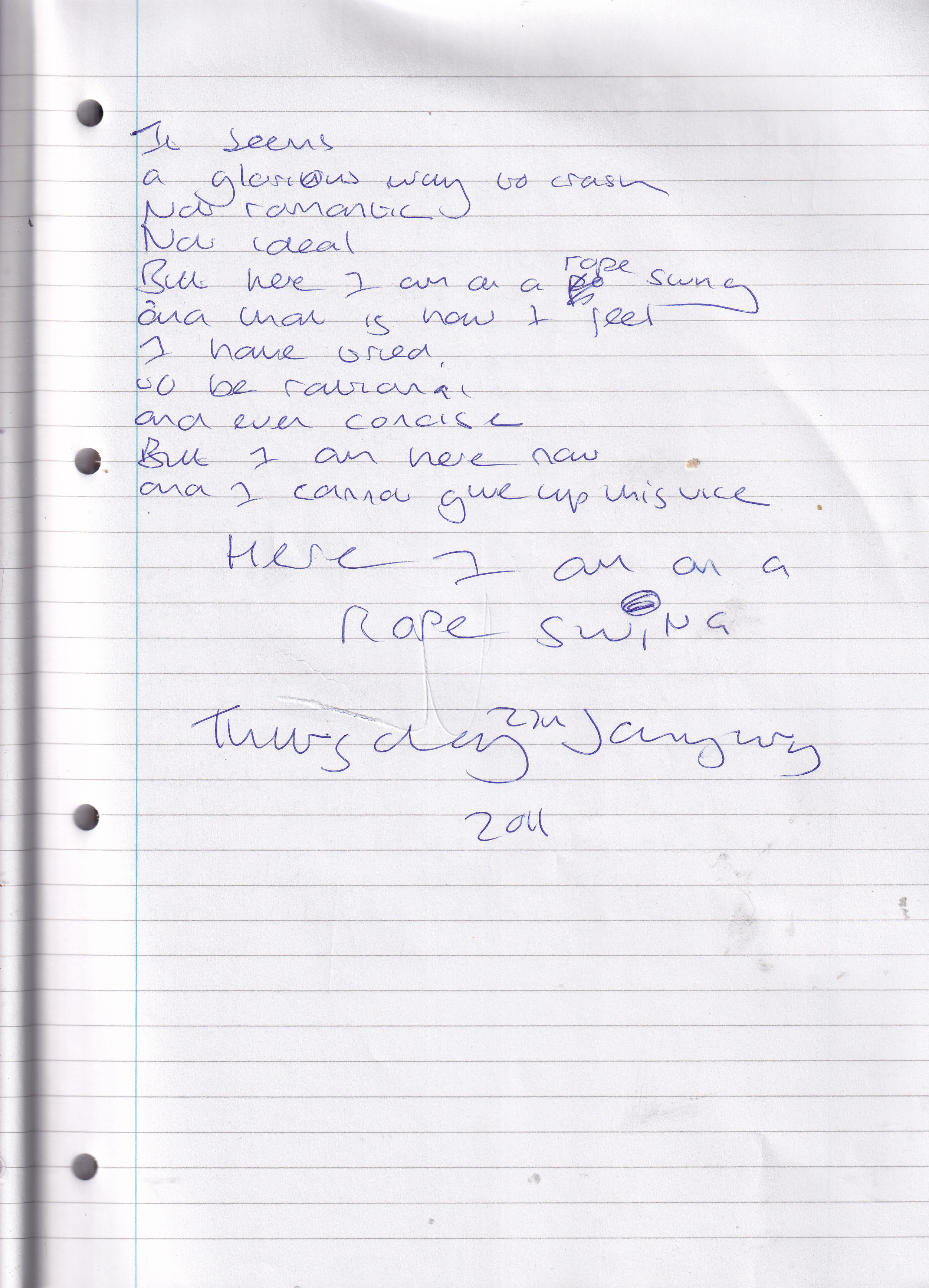 Here I Am On a Rope Swing – Written Thursday 22nd January 2011 (Aged 35)