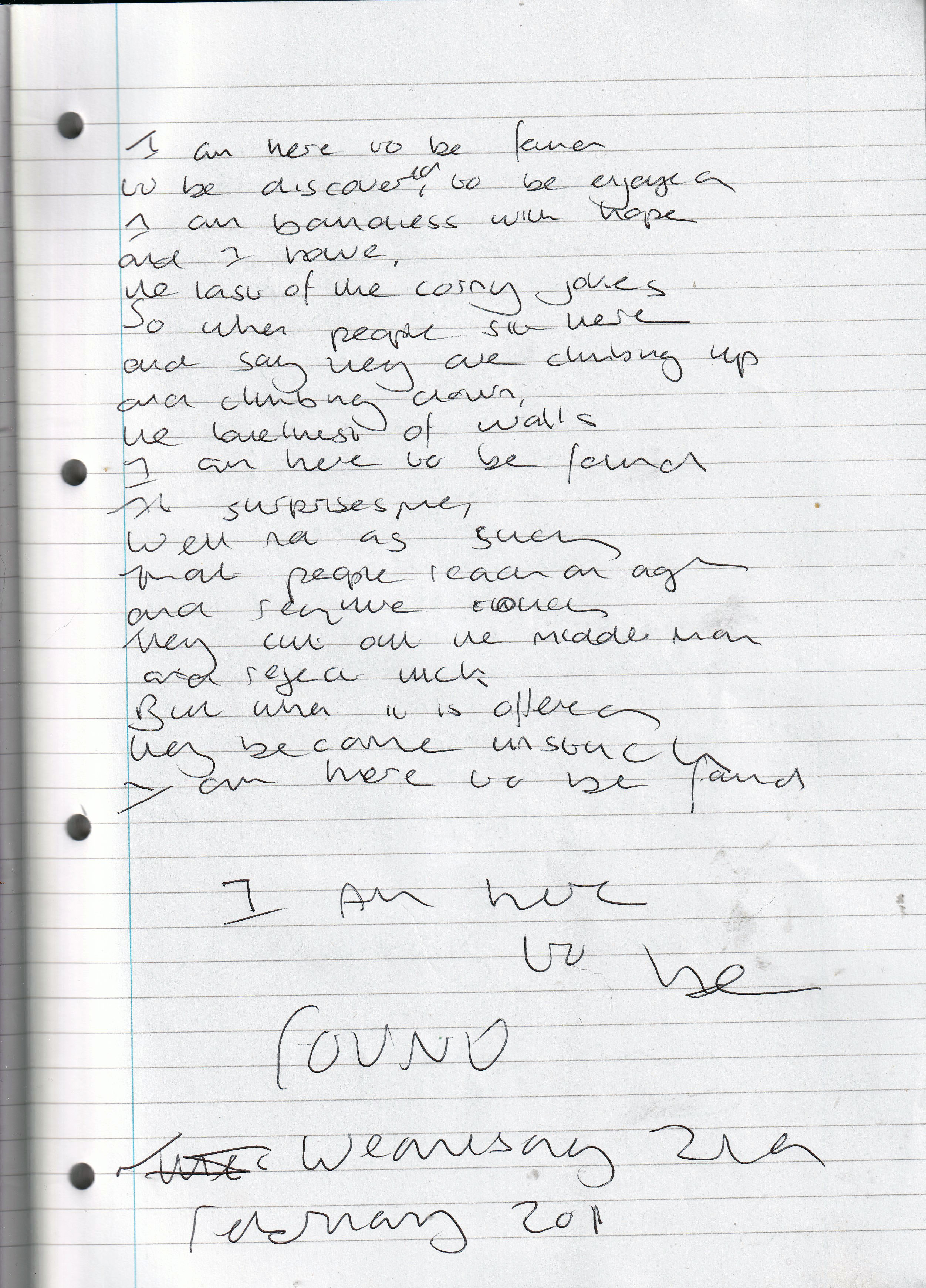 I Am Here to Be Found – Written Wednesday 2nd February 2011 (Aged 35)