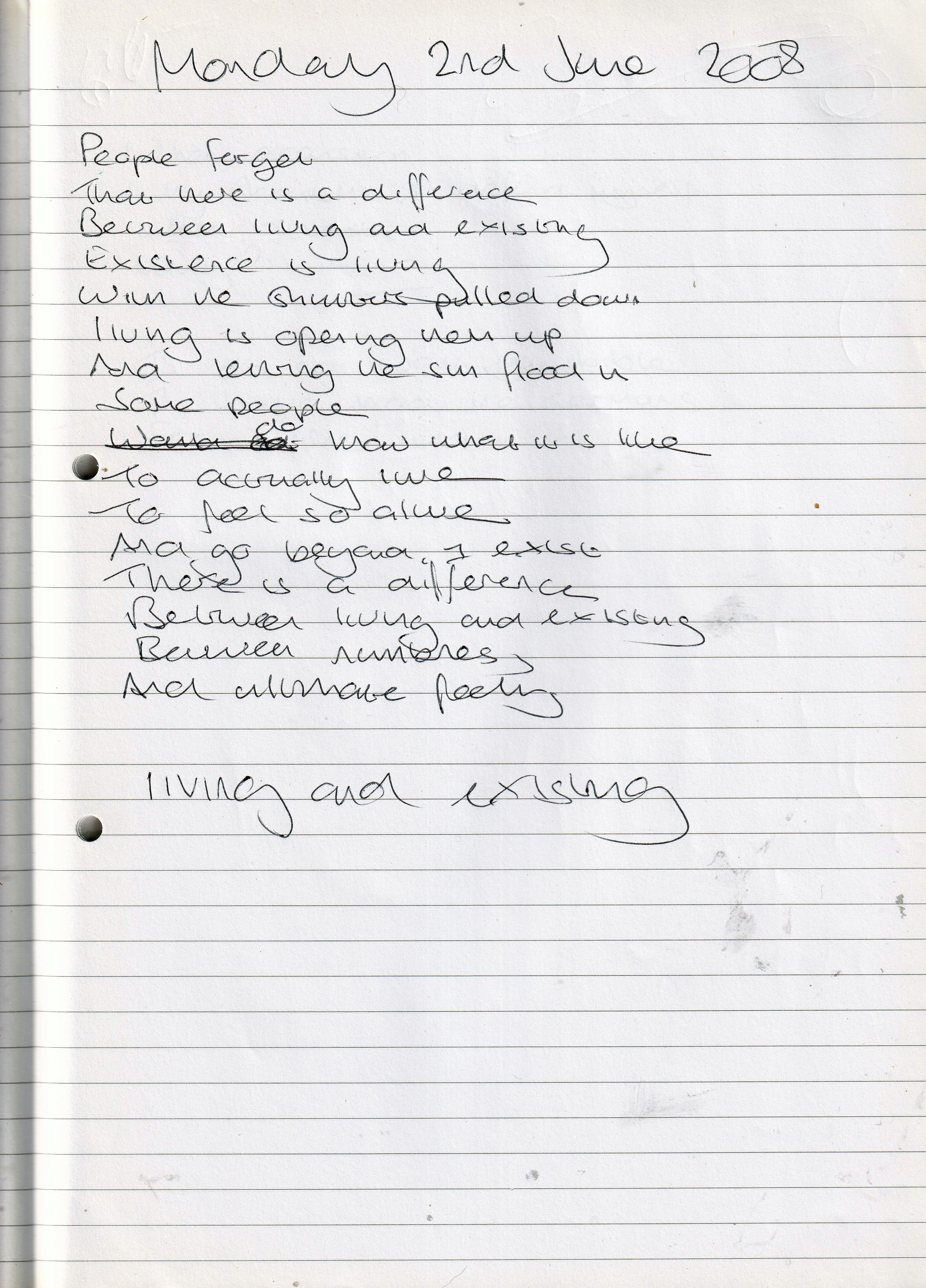 Living and Existing – Written Monday 2nd June 2008 (Aged 33)