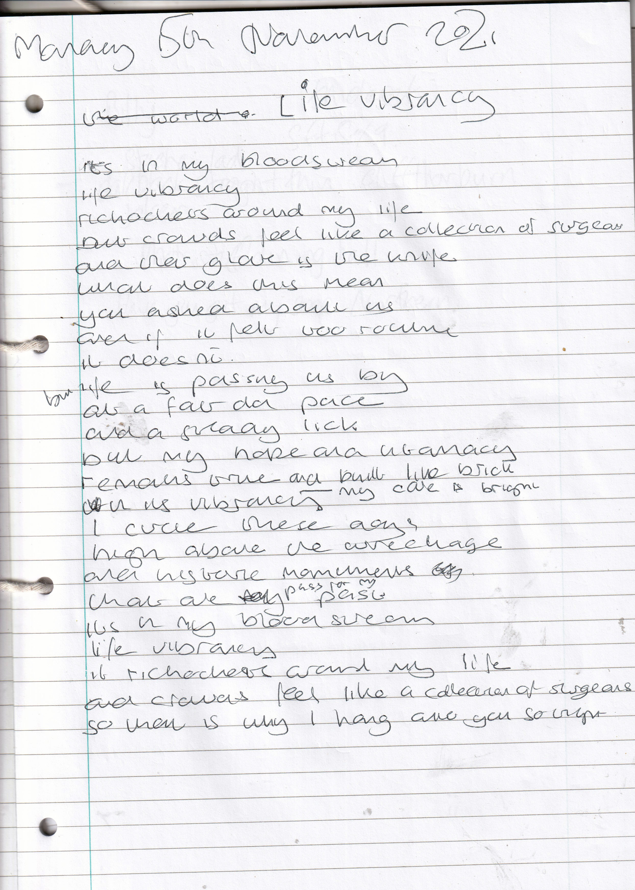 Life Vibrancy – Written Monday 15th November 2021 (Aged 46)