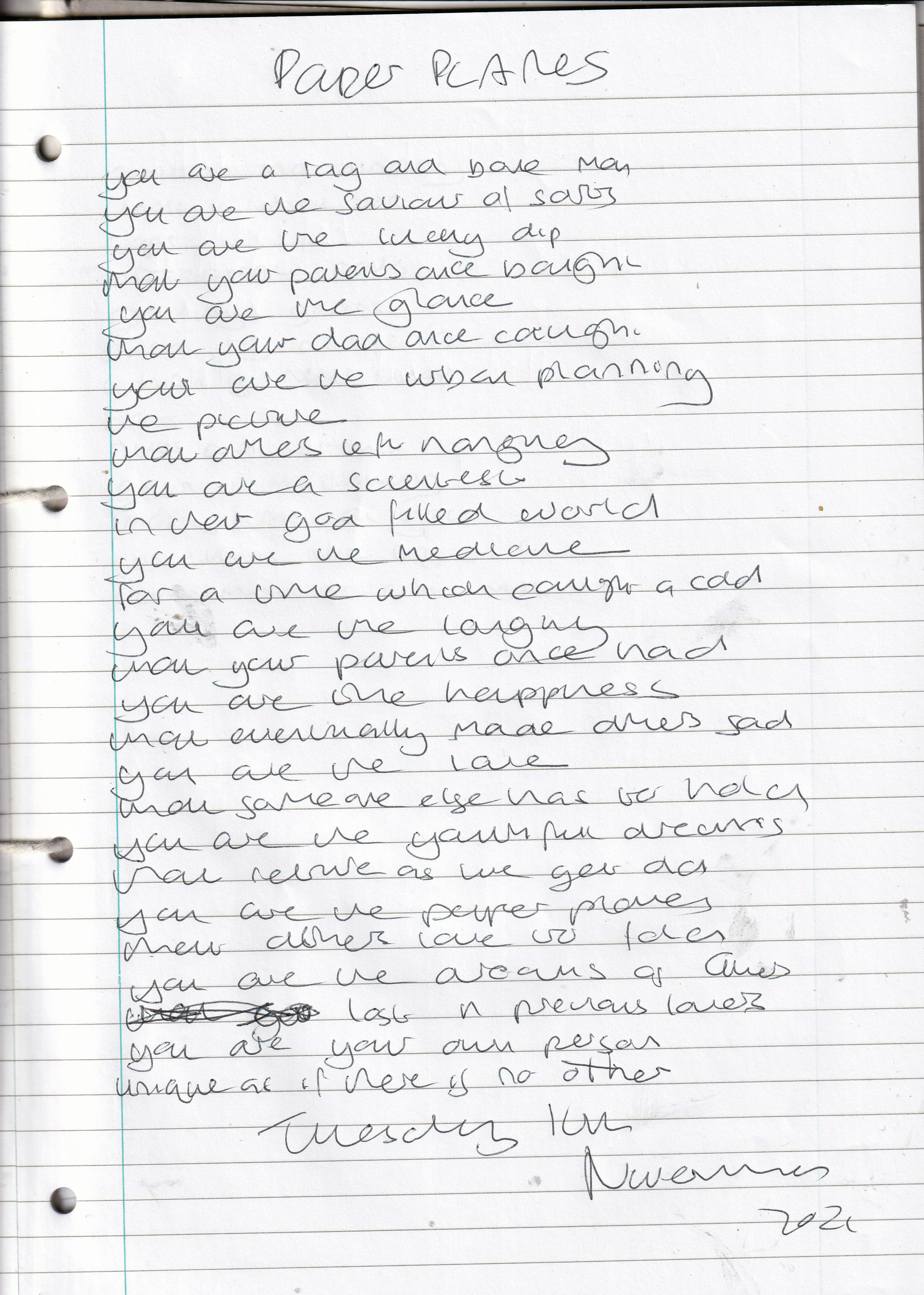 Paper Planes -Written Tuesday 16th November 2021 (Aged 46)