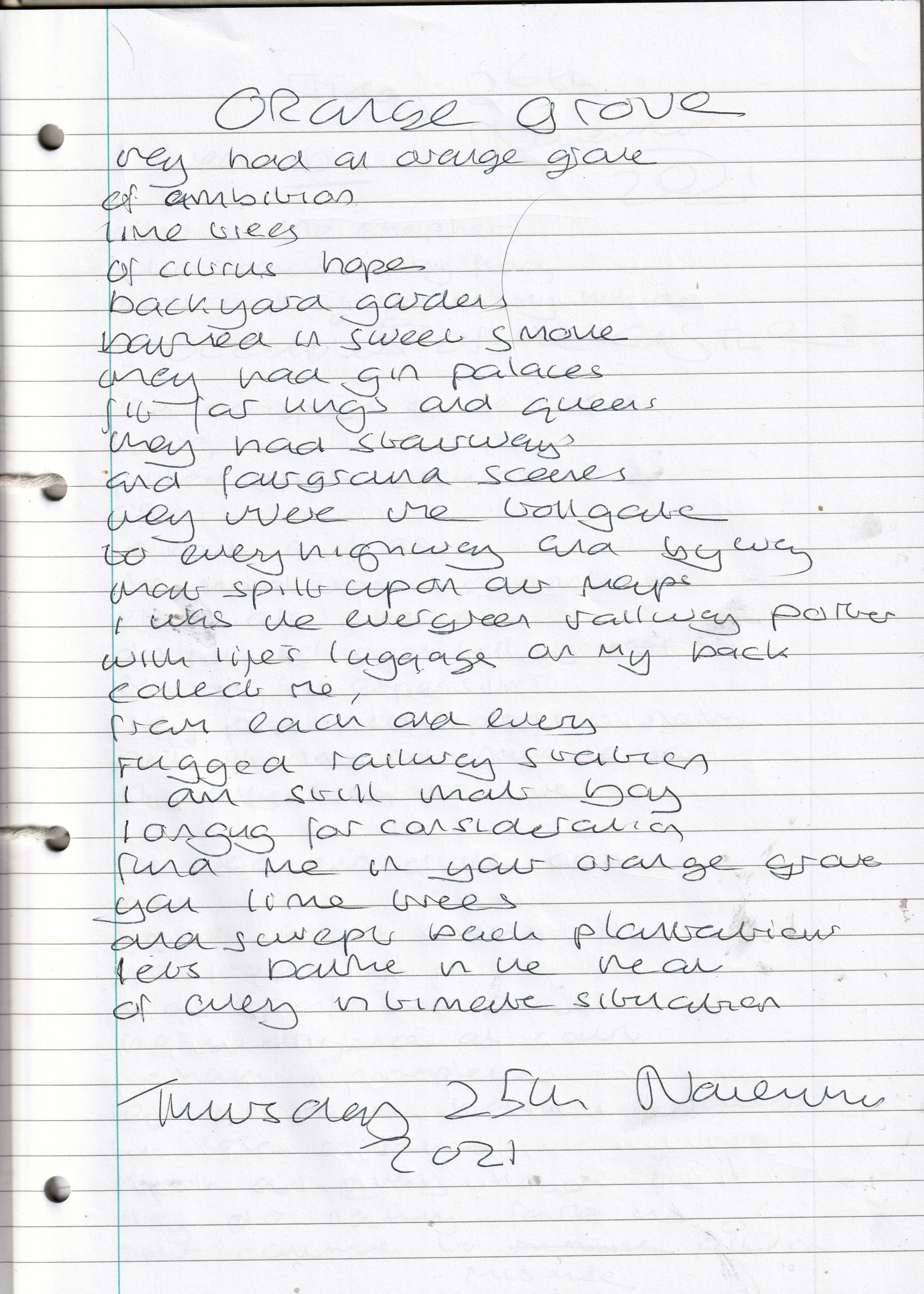 Orange Grove – Written Thursday 25th November 2021 (Aged 46)