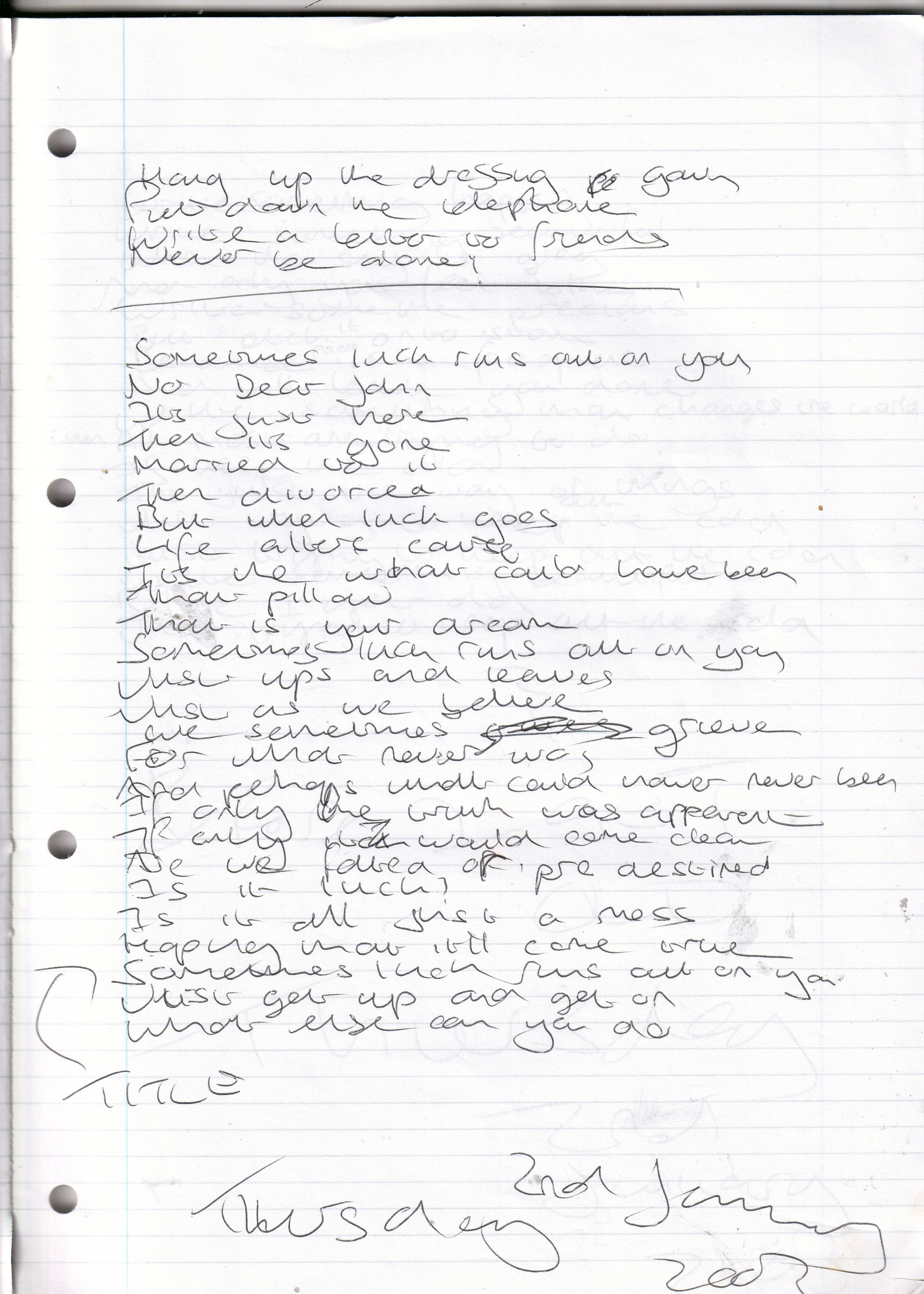 Sometimes Luck Runs Out On You – Written Thursday 2nd January 2003 (Aged 27)