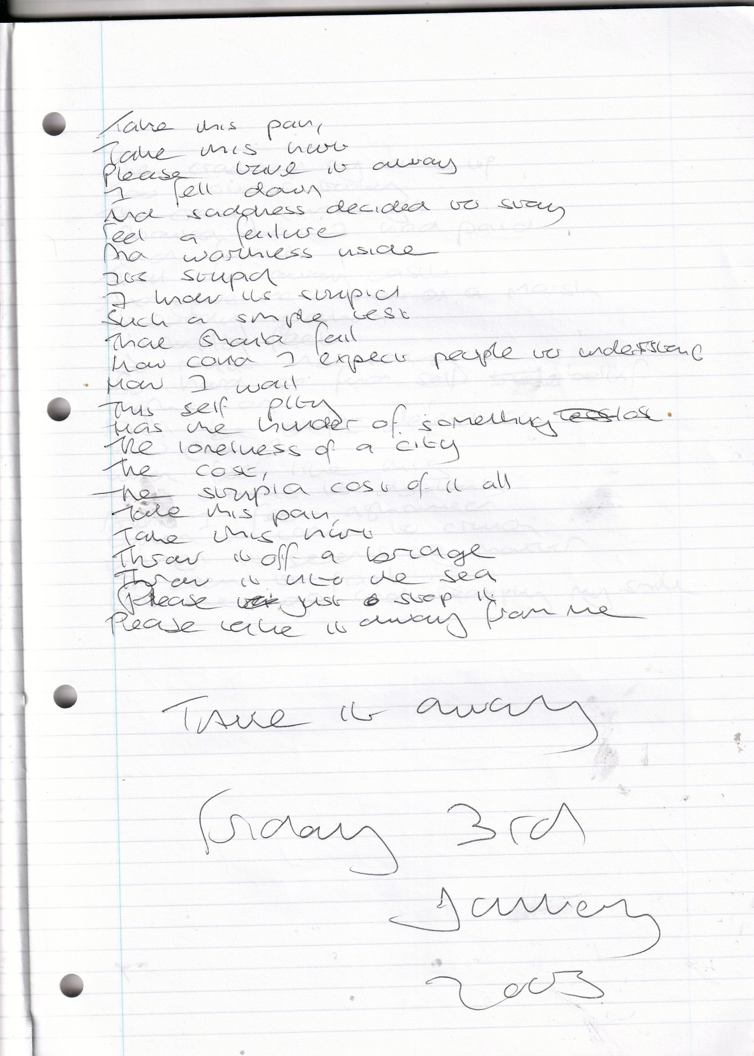 Take It Away – Written Friday 3rd January 2003 (Aged 27)