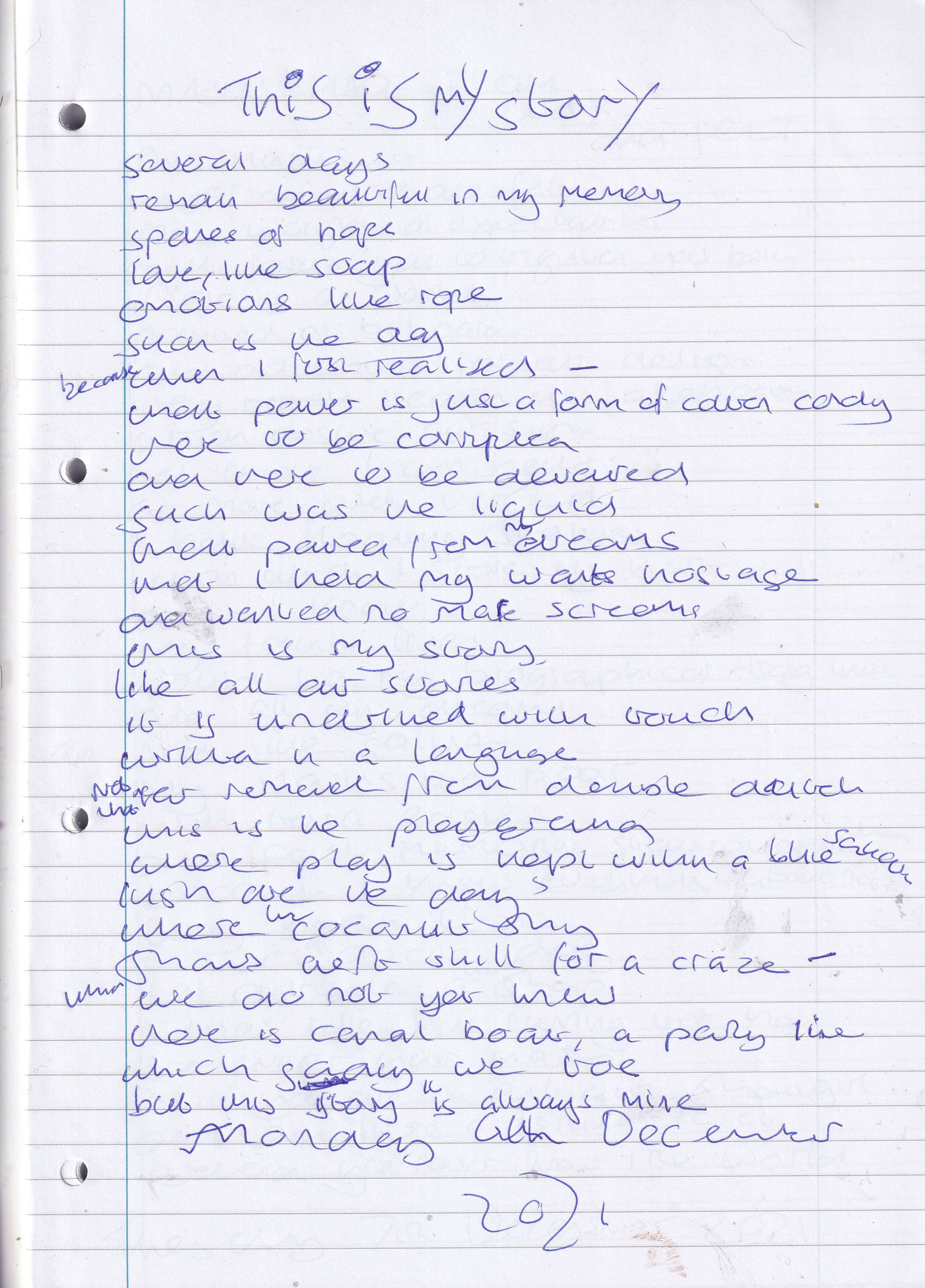 This Is My Story – Written Monday 6th December 2021 (Aged 46)