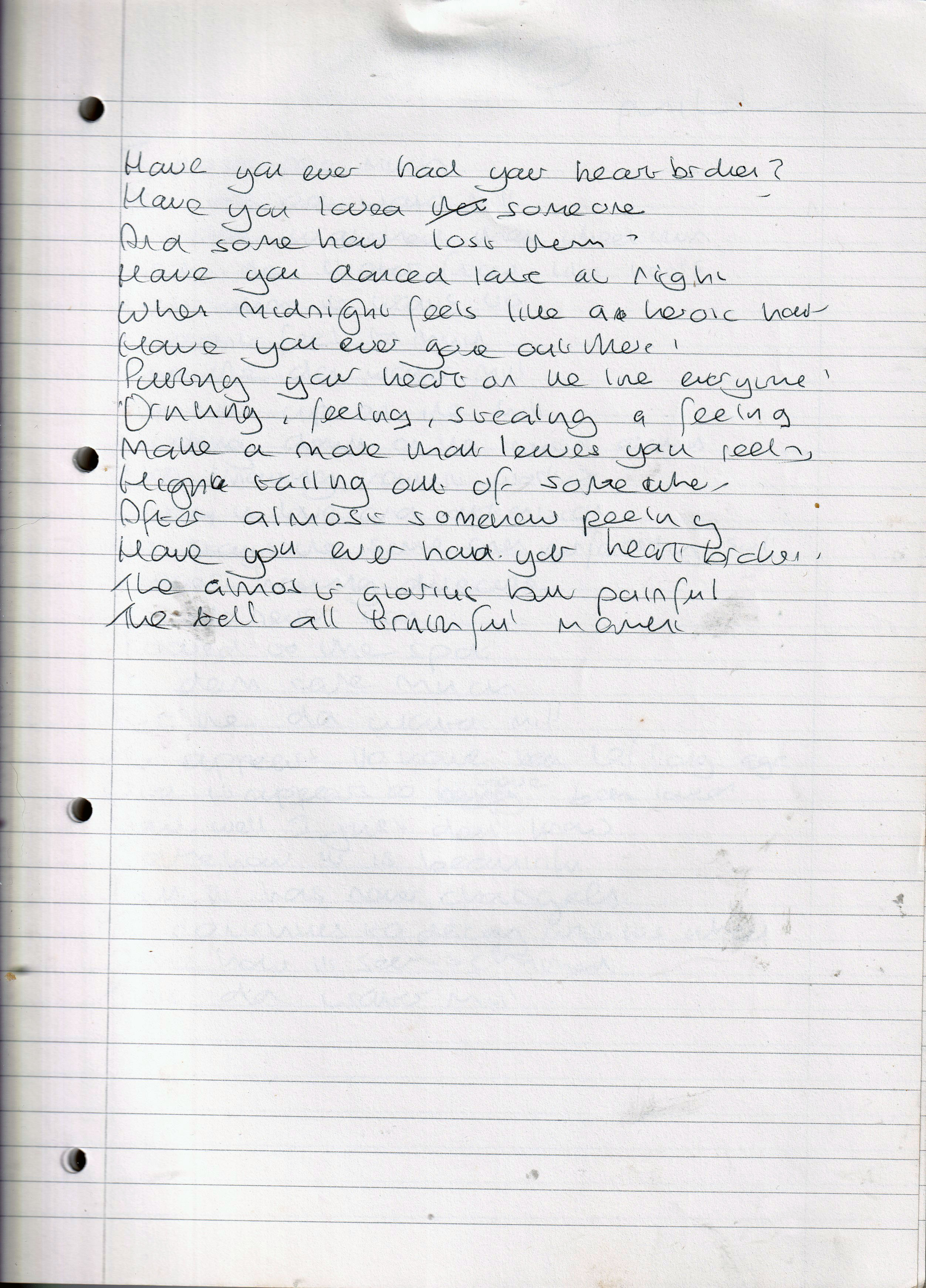 Have You Ever Had Your Heart Broken? – Written October 2005 (Aged 30)