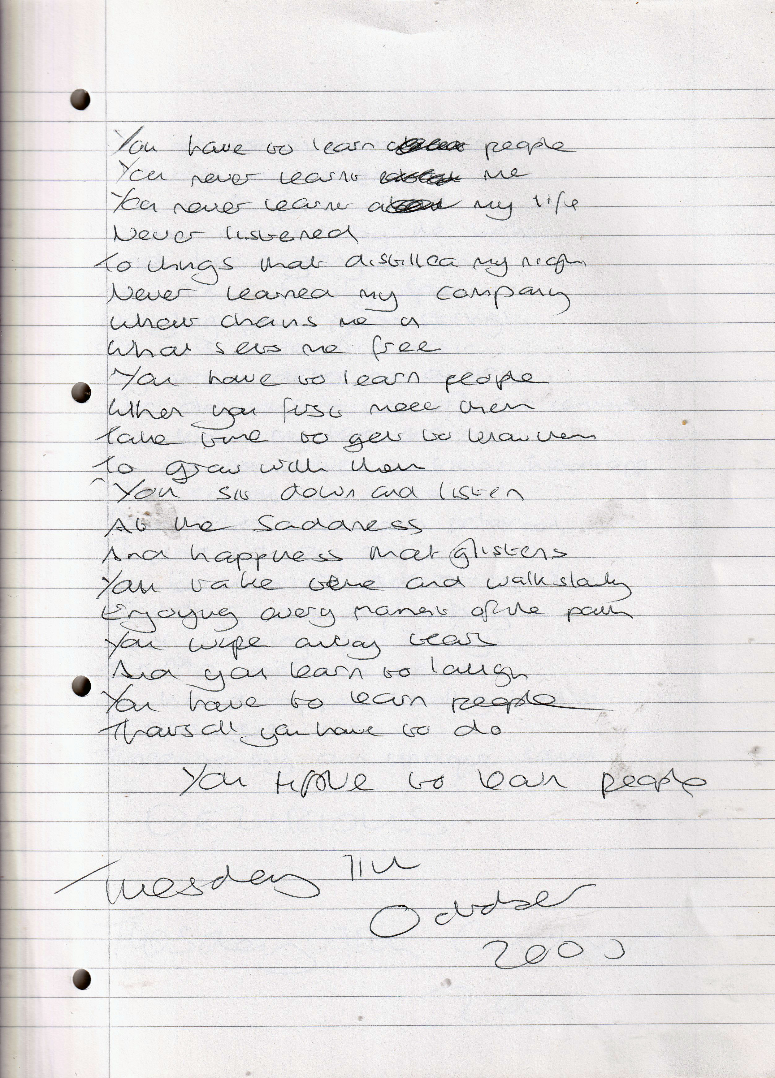 You Have To Learn People – Written Tuesday 11th October 2005 (Aged 30)