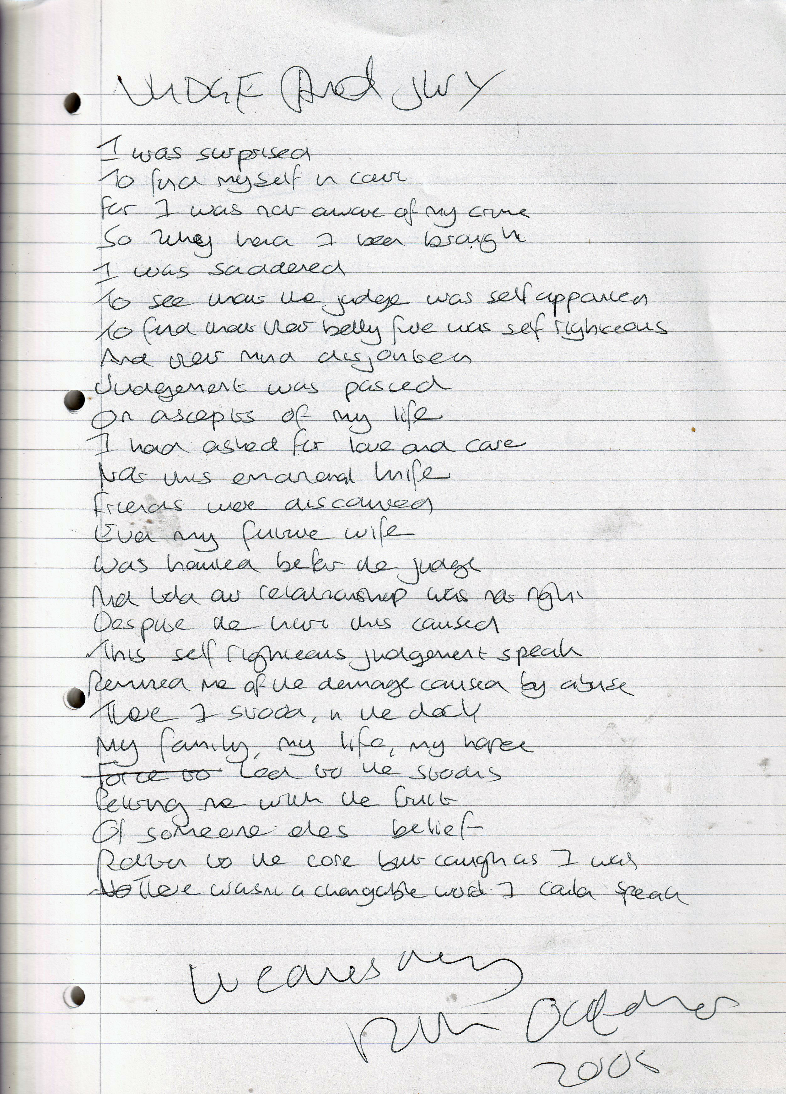 Judge and Jury – Written Wednesday 12th October 2005 (Aged 30)