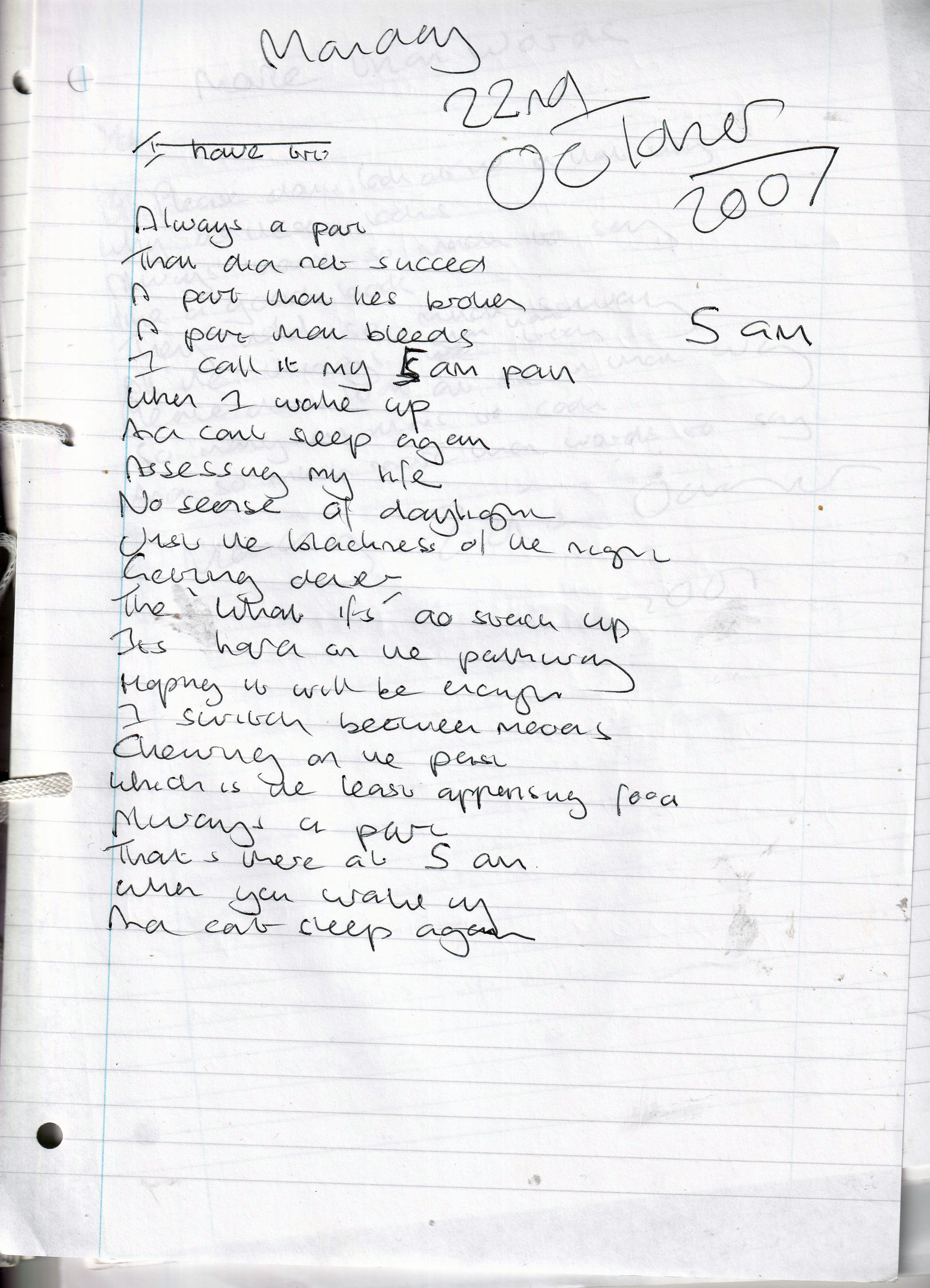 5am – Written Monday 22nd October 2007 (Aged 32)