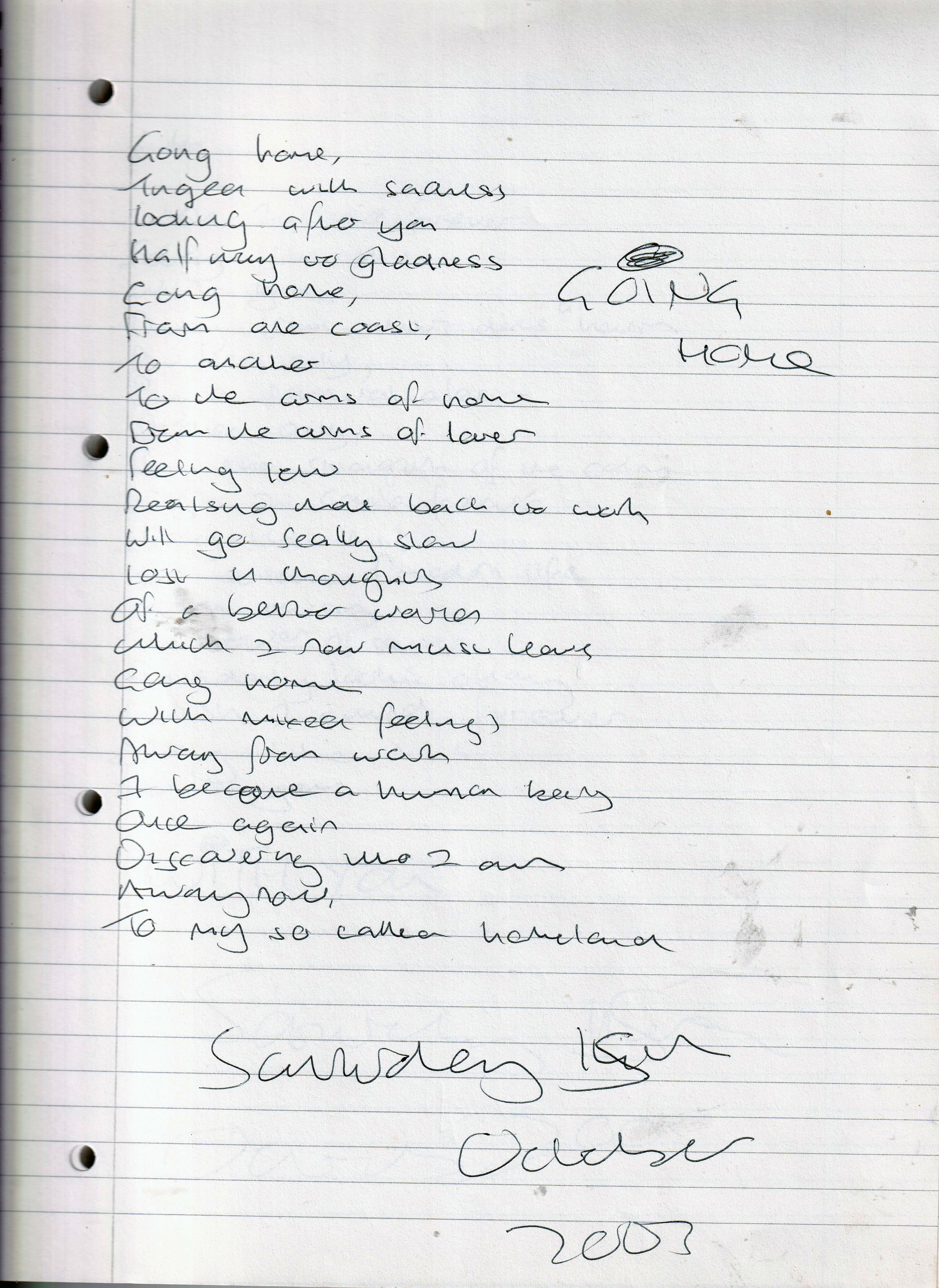 Going Home – Written Saturday 15th October 2005 (Aged 30)