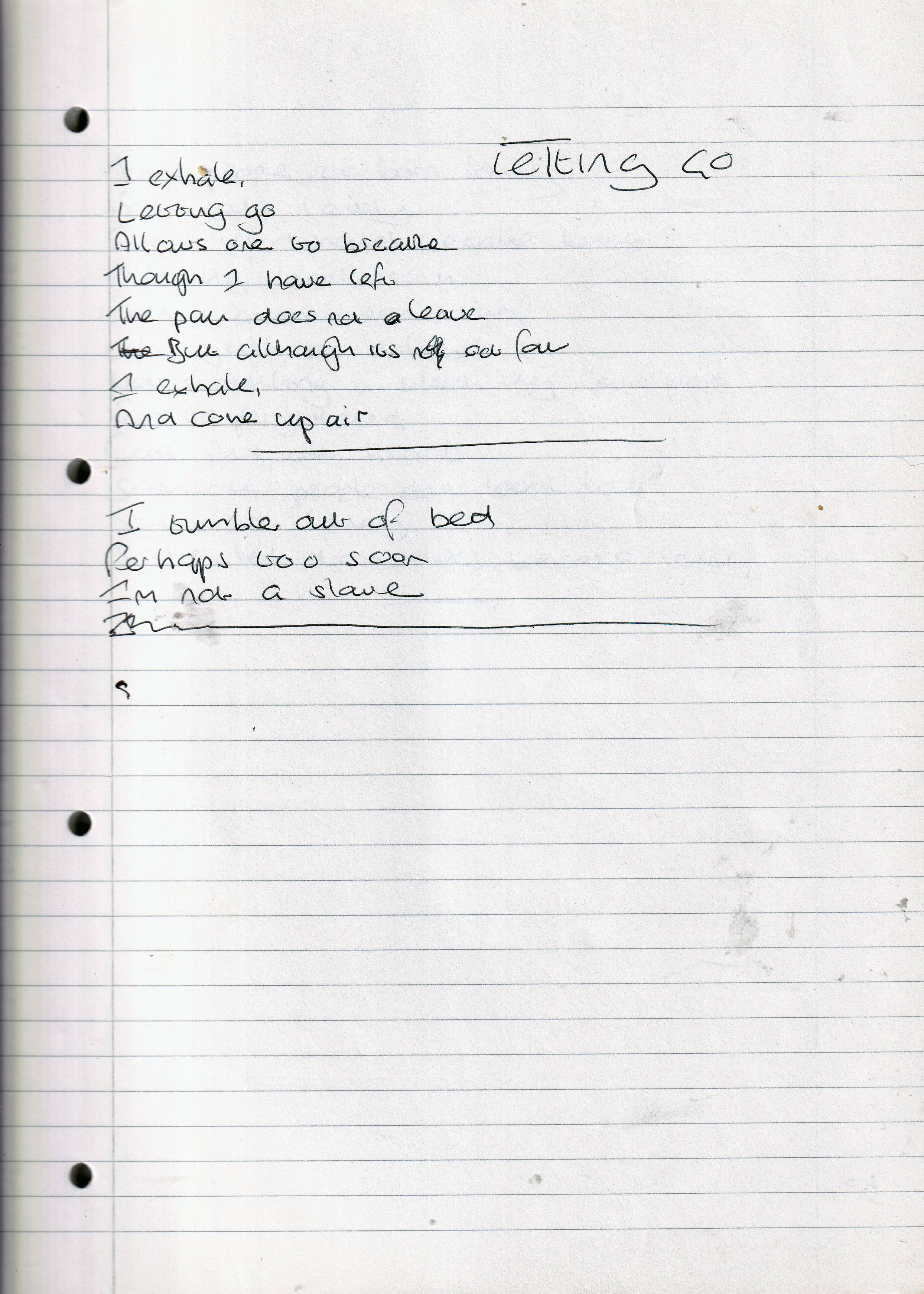 Letting Go – Written October 2005 (Aged 30)