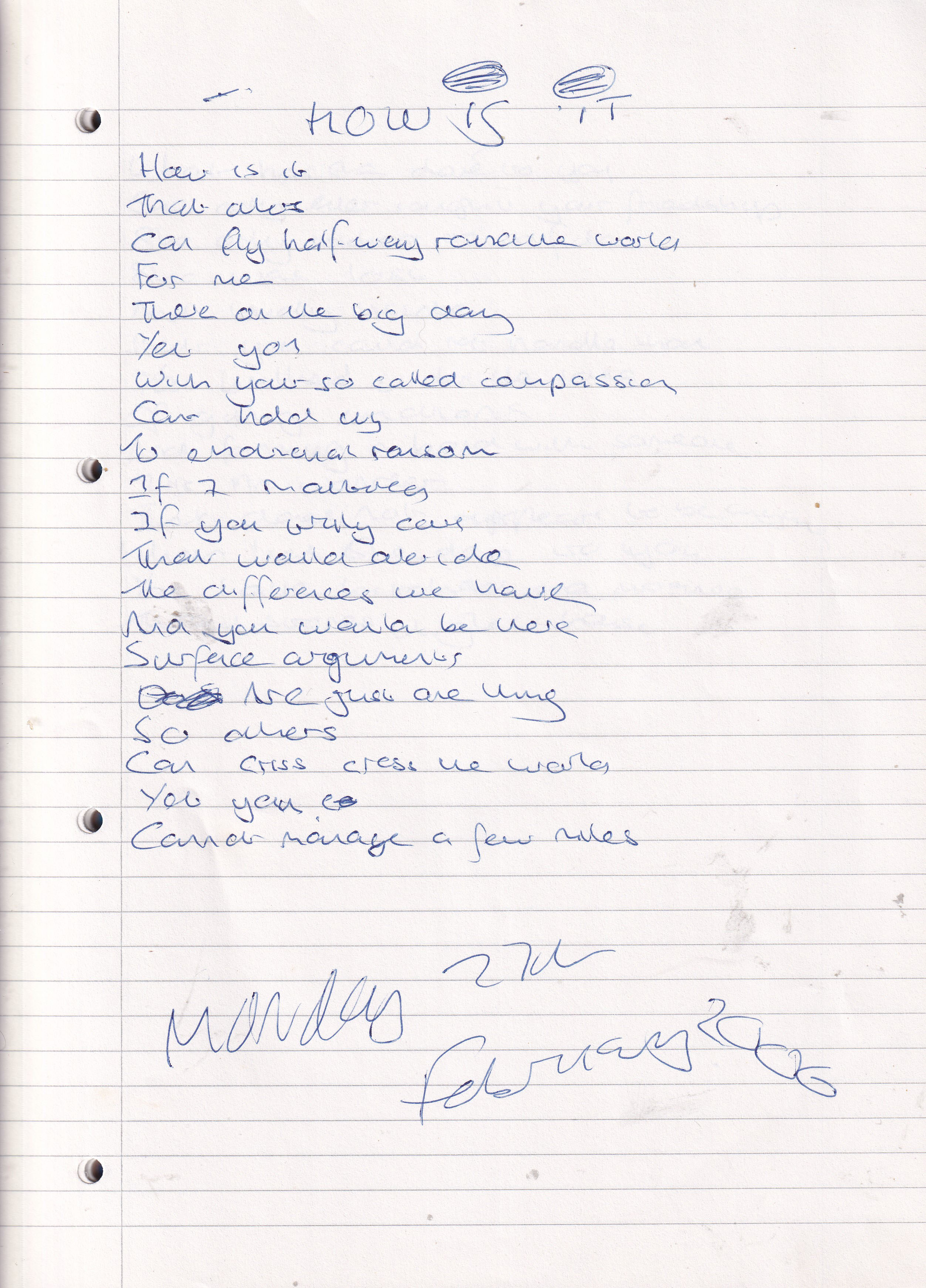 How Is It? – Written Monday 27th February 2006 (Aged 31)