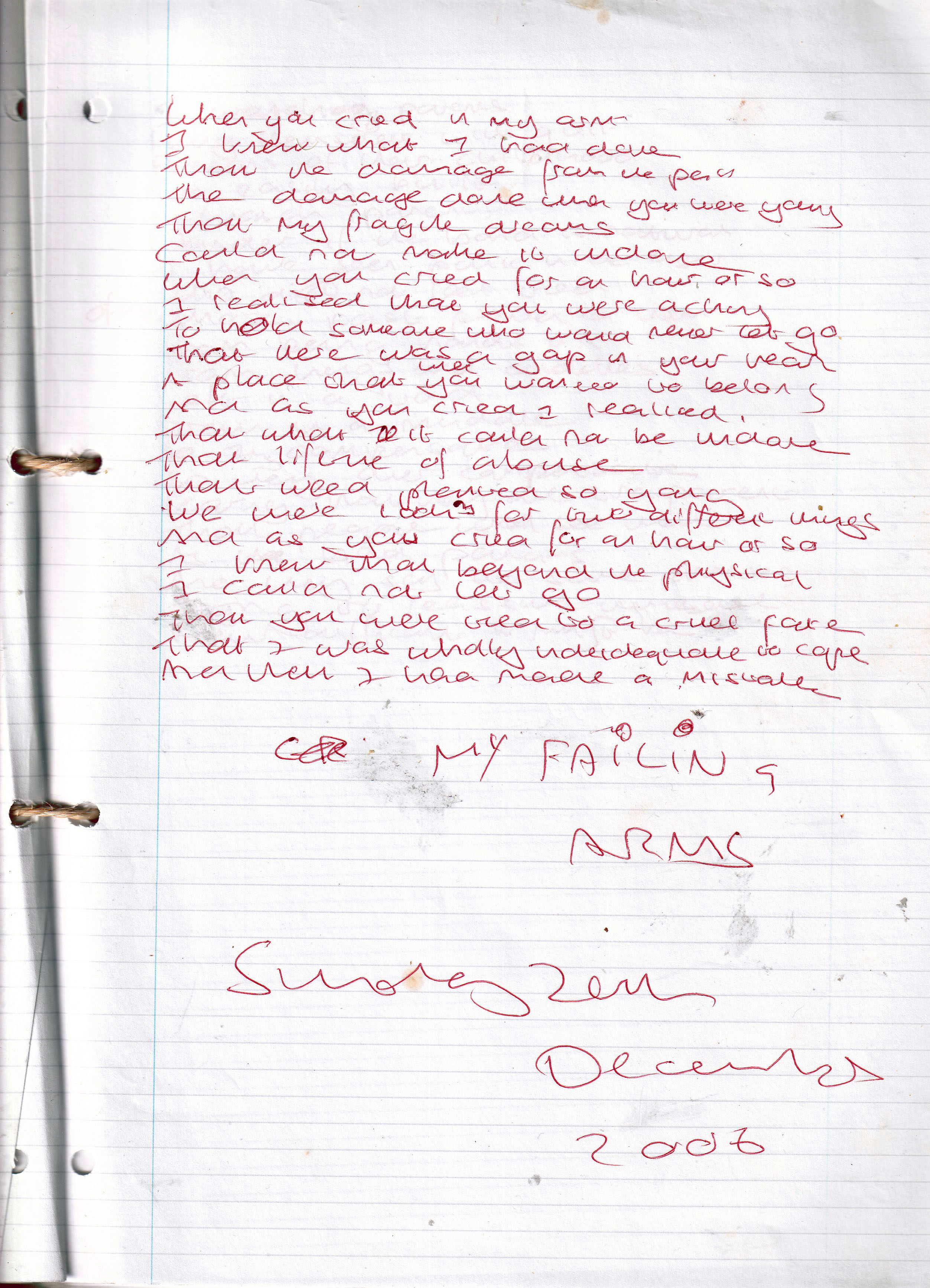 My Failing Arms – Written Sunday 24th December 2006 (Aged 31)