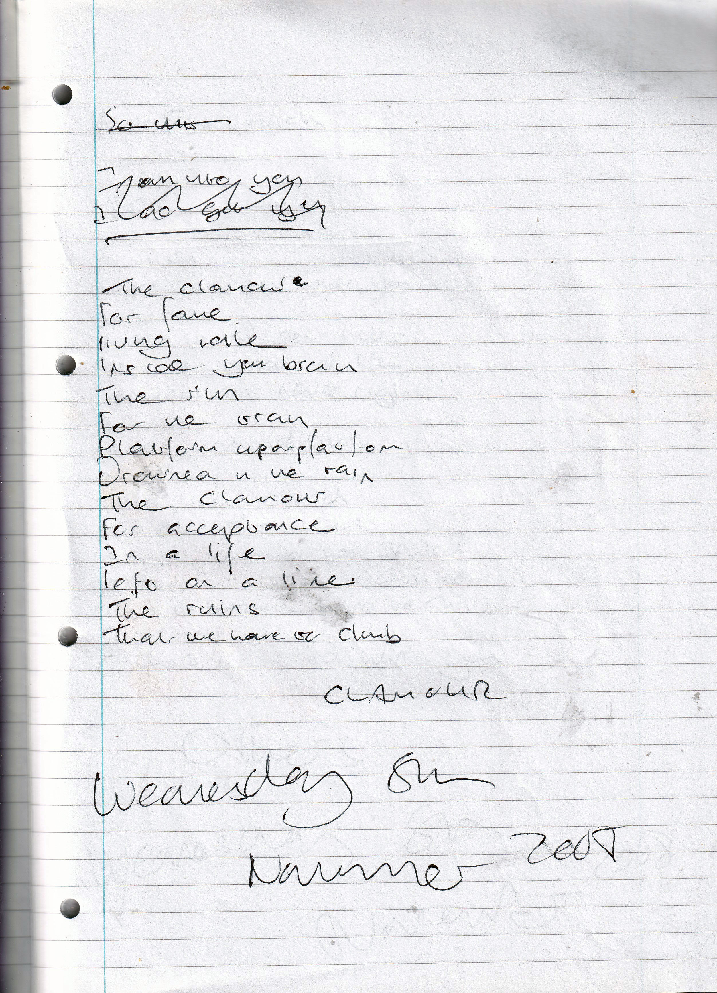 Clamour – Written Wednesday 5th November 2008 (Aged 33)