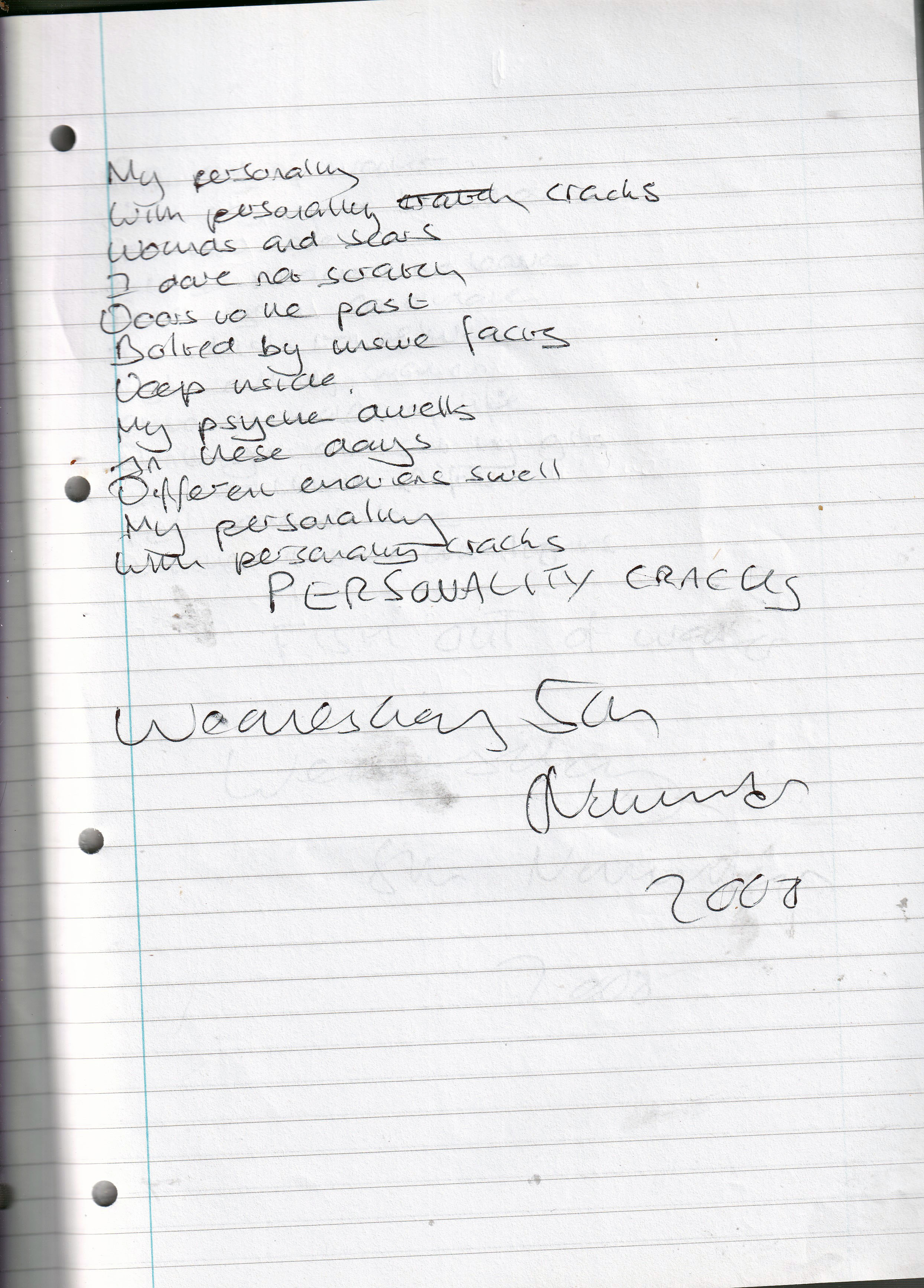 Personality Cracks – Written Wednesday 5th November 2008 (Aged 33)