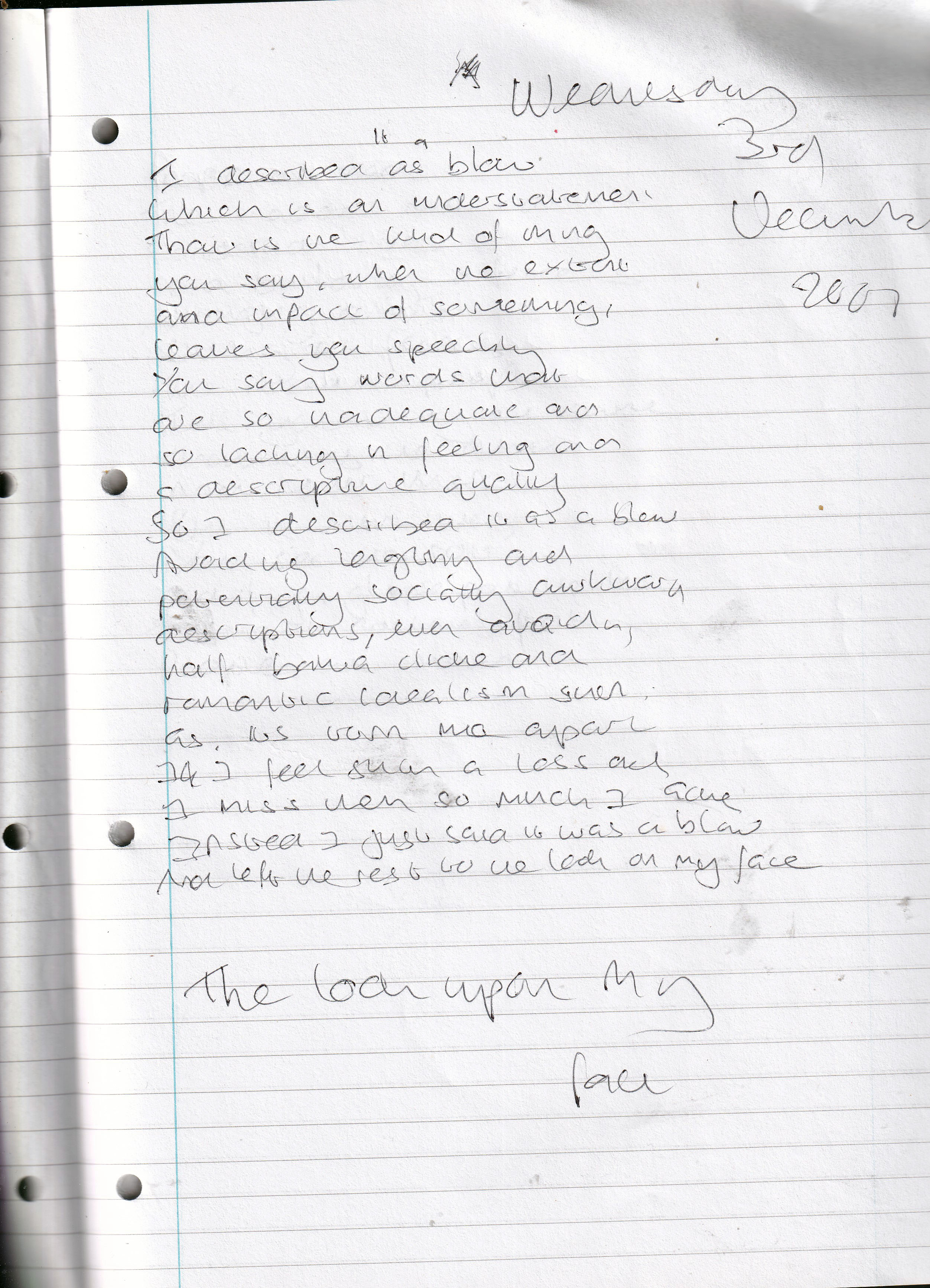 The Look Upon My Face – Written Wednesday 3rd December 2008 (Aged 33)