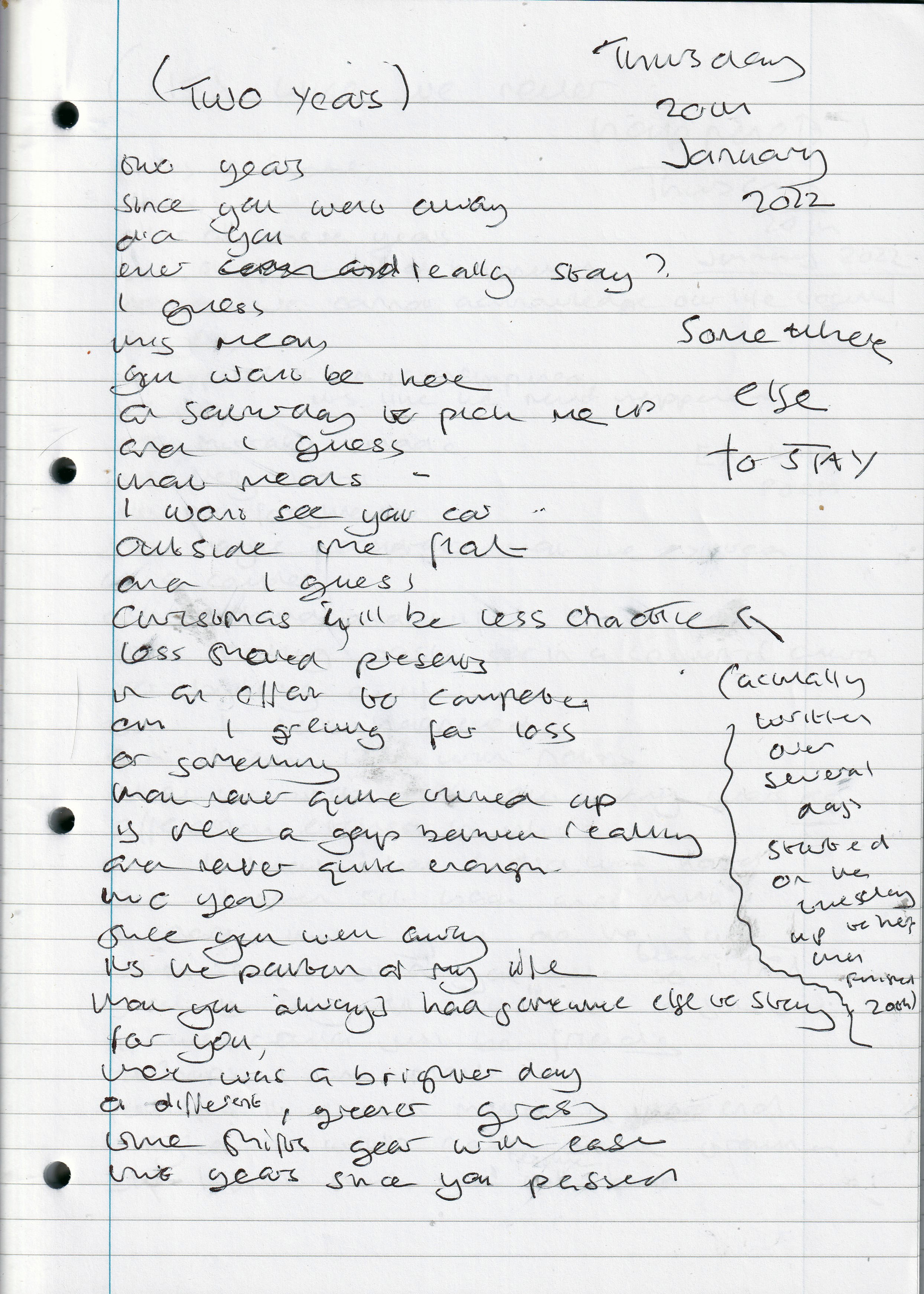 Somewhere Else to Stay – Written Thursday 20th January 2022 (Aged 47)
