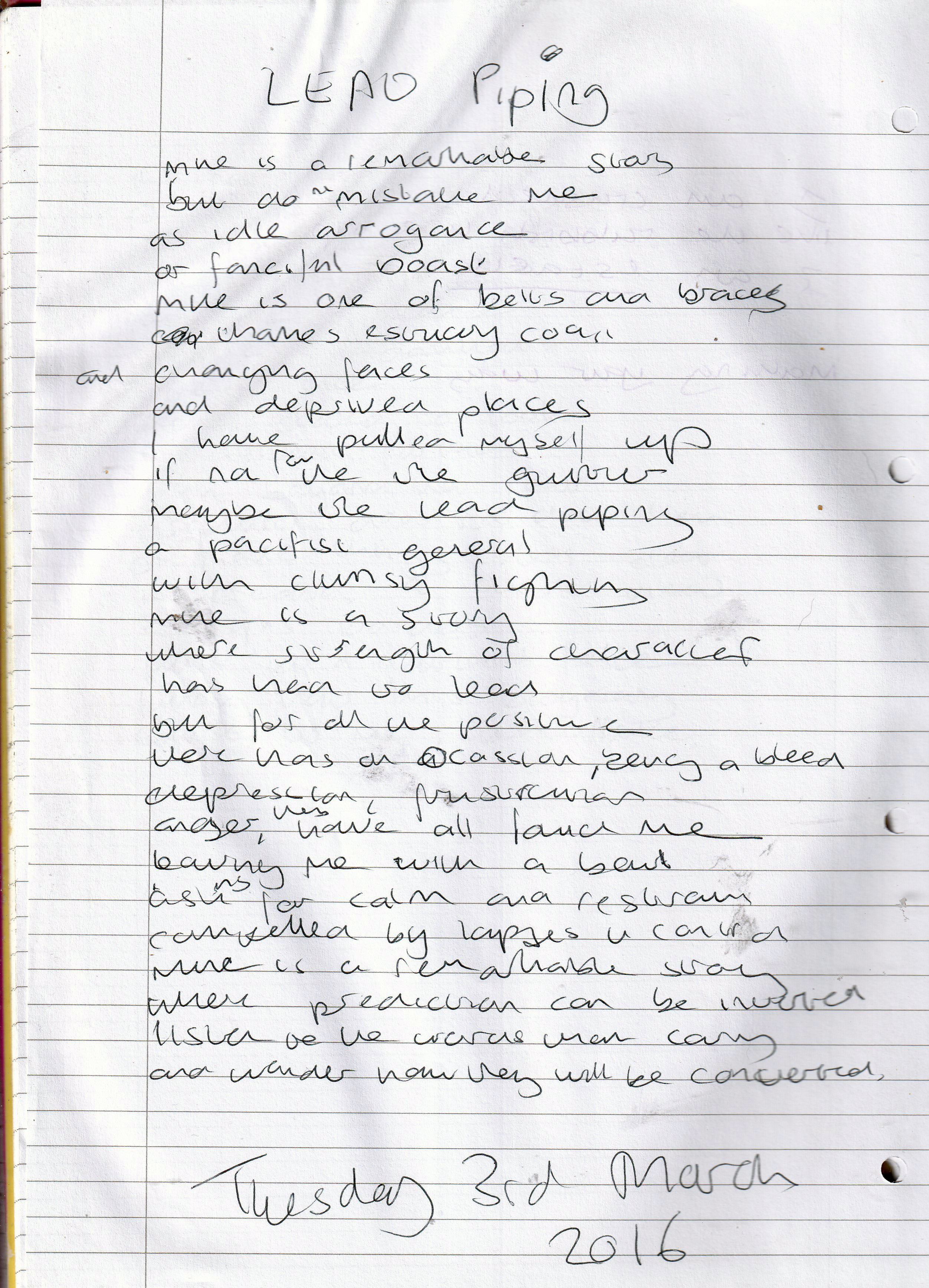 Lead Piping – Written Tuesday 3rd March 2016 (Aged 41)