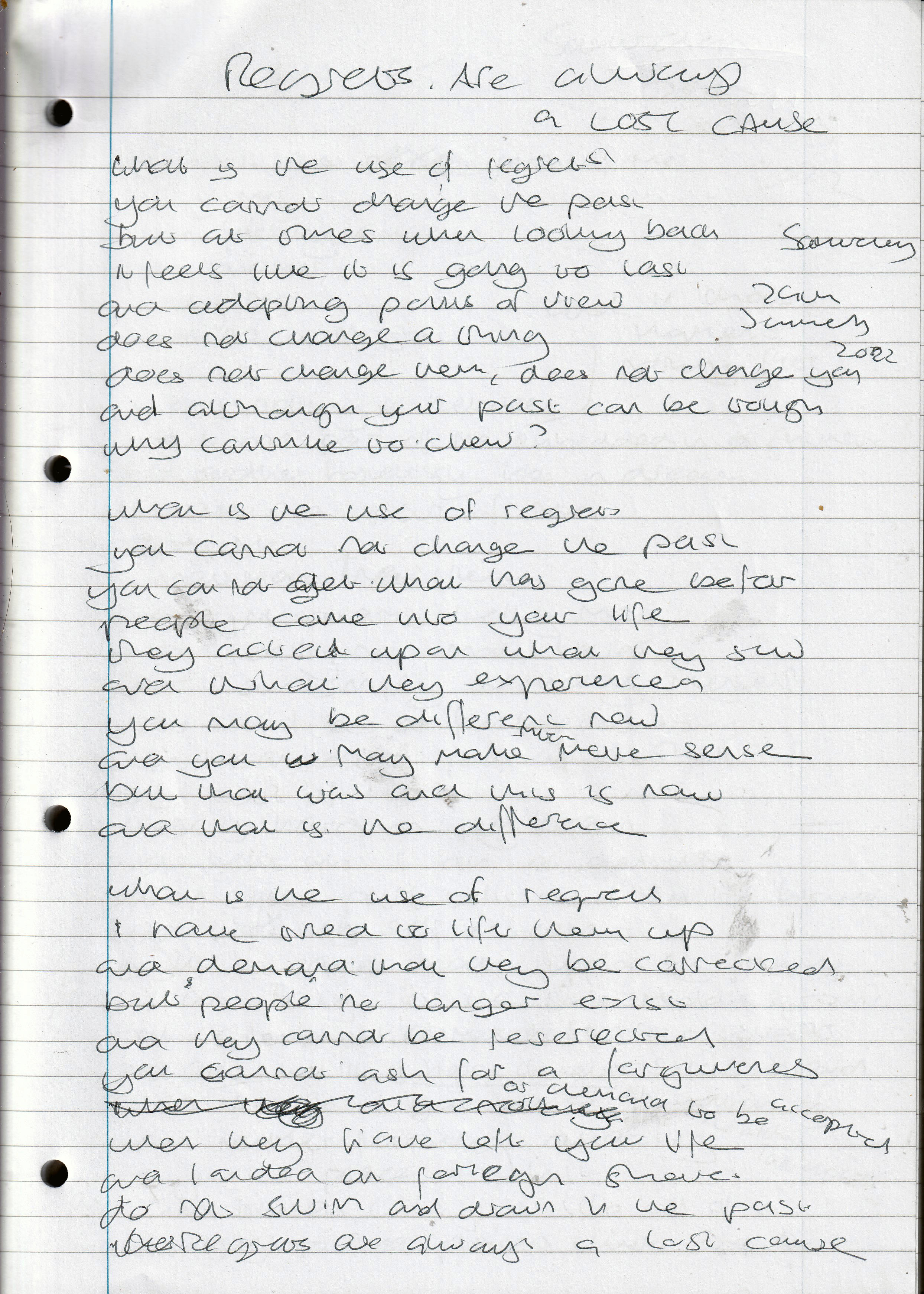 Regrets Are Always a Lost Cause – Written Saturday 29th January 2022 (Aged 46)