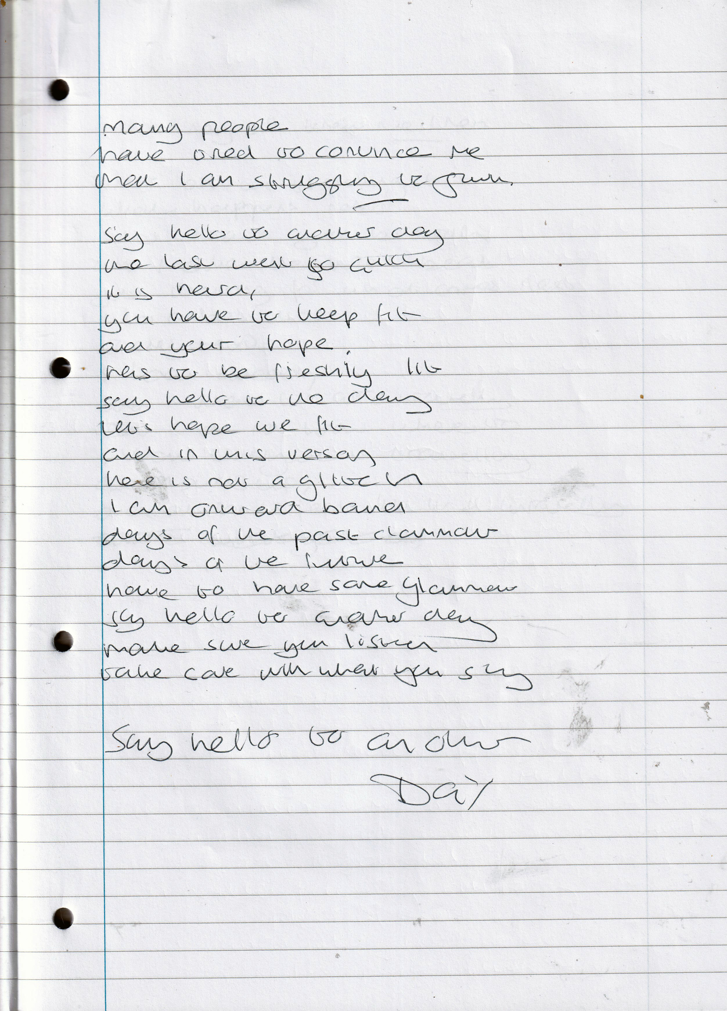 Say Hello to a New Day – Written January 2022 (Aged 46)