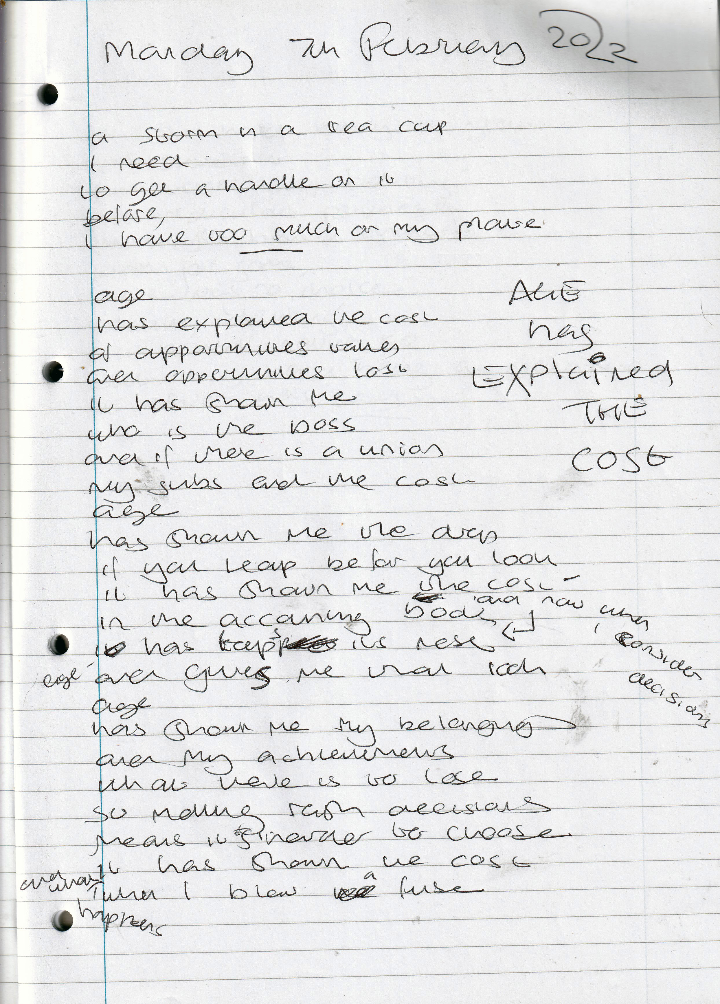 Age Has Explained The Cost – Written Monday 7th February 2022 (Aged 46)
