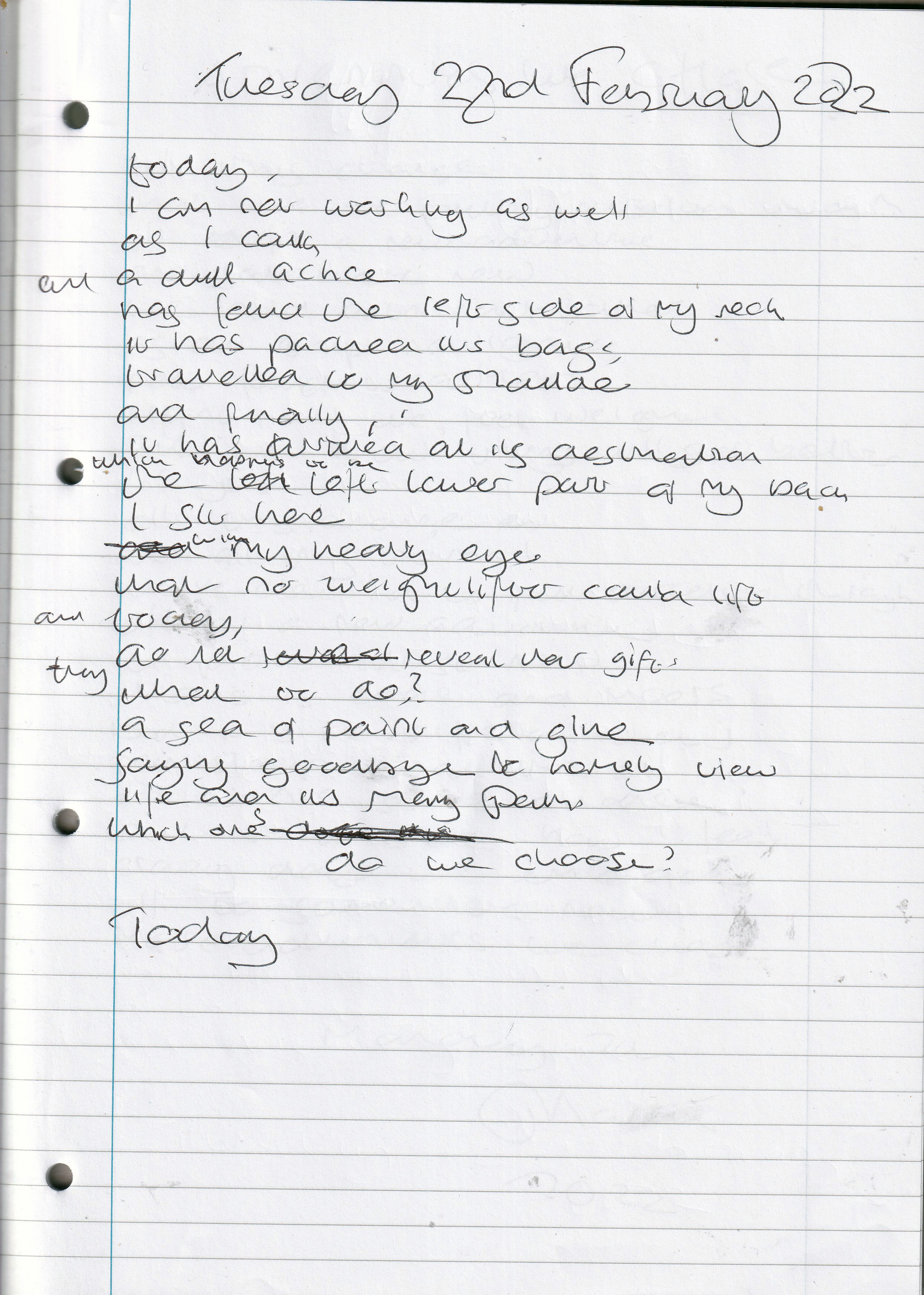 Today – Written Tuesday 22nd February 2022 (Aged 46)