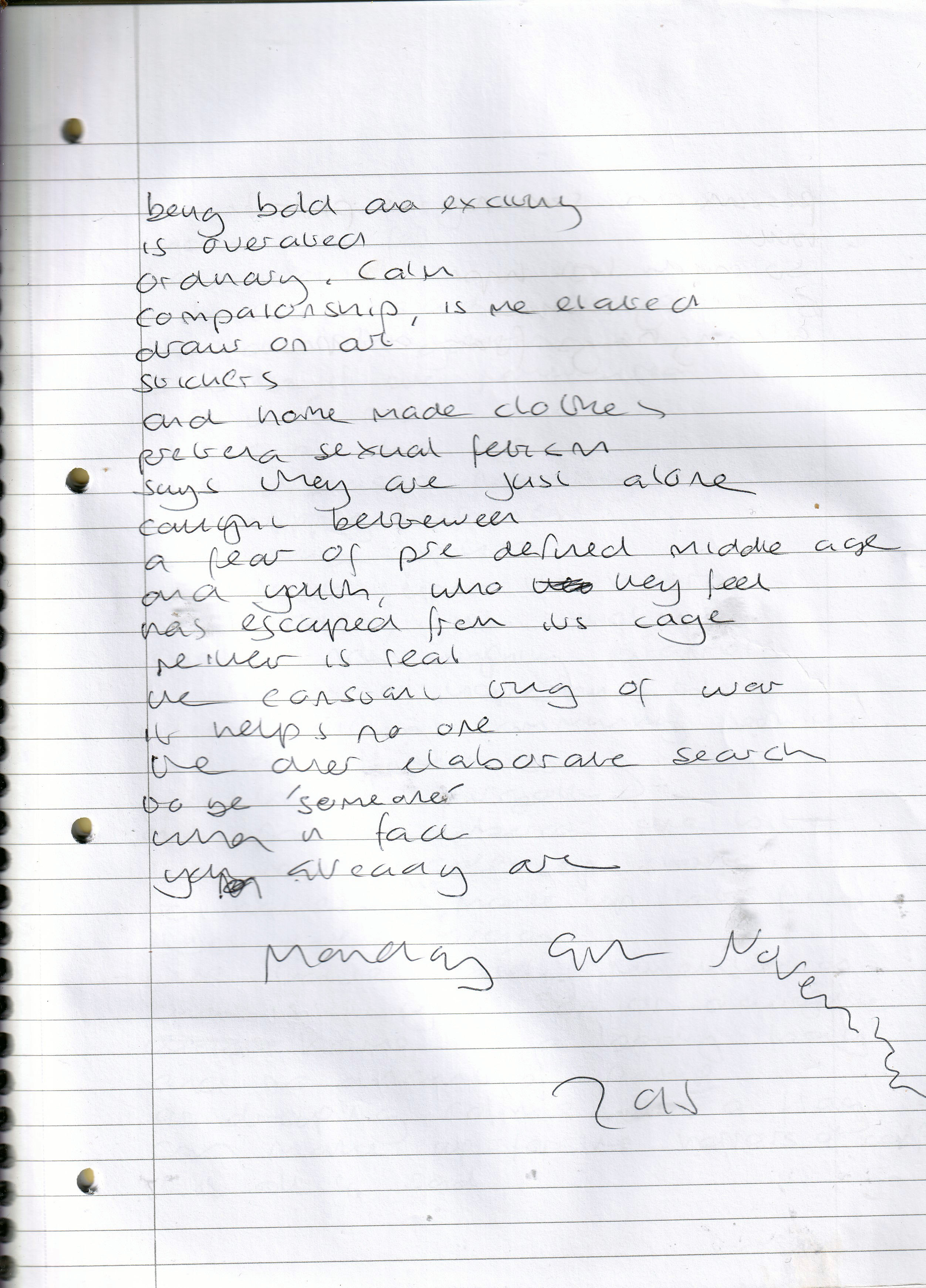 Companionship – Written Monday 9th November 2015 (Aged 40)