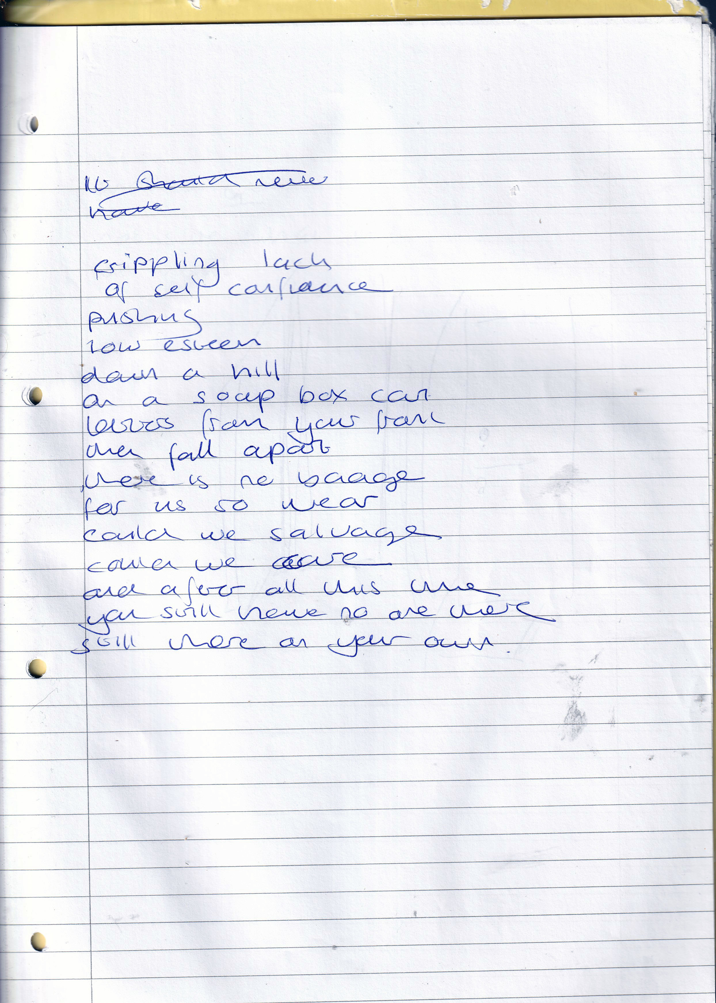 Lack of Self Confidence – Written January 2016 (Aged 40)