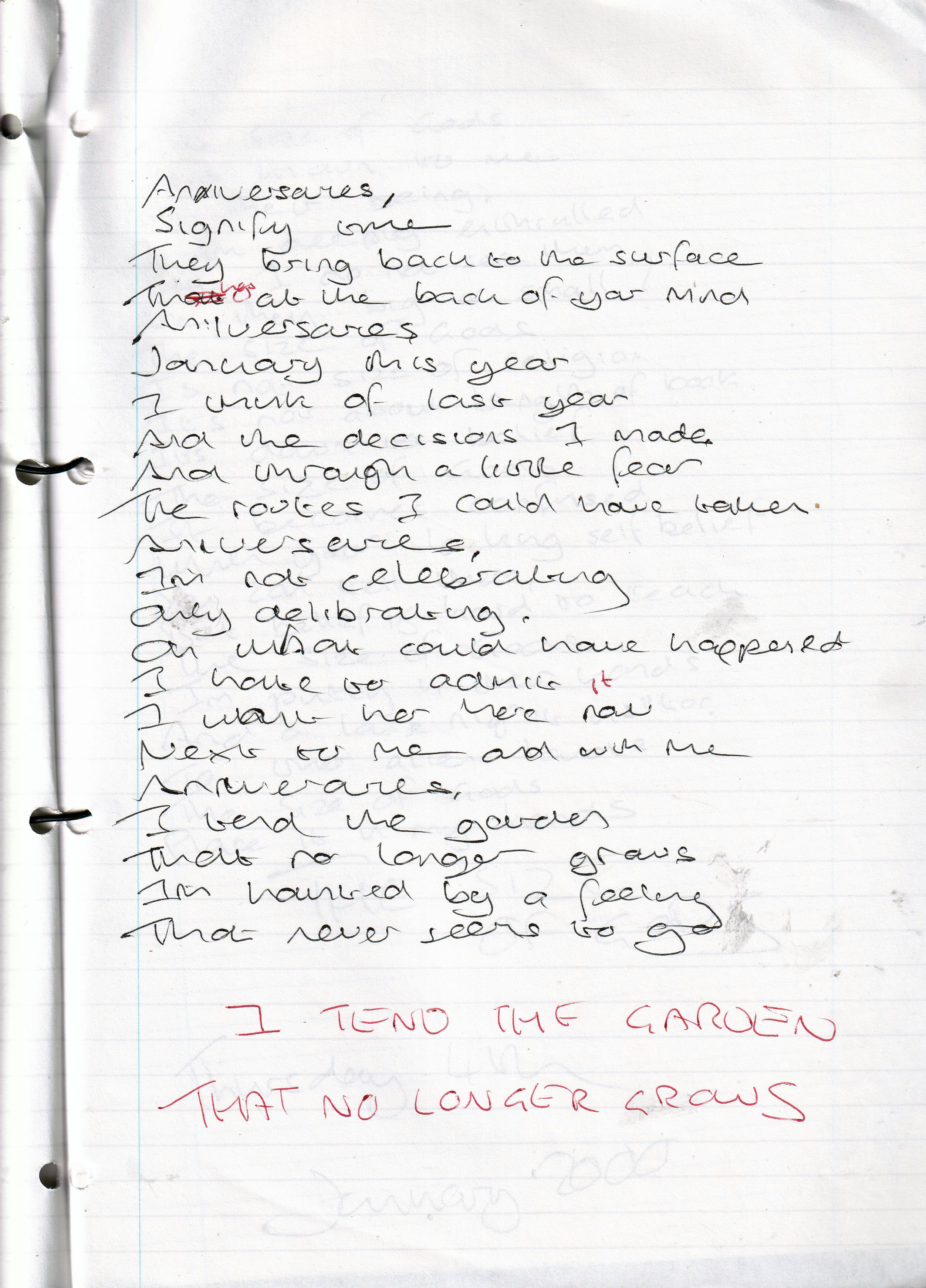 I Tend The Garden That No Longer Grows – Written January 2001 (Aged 25)