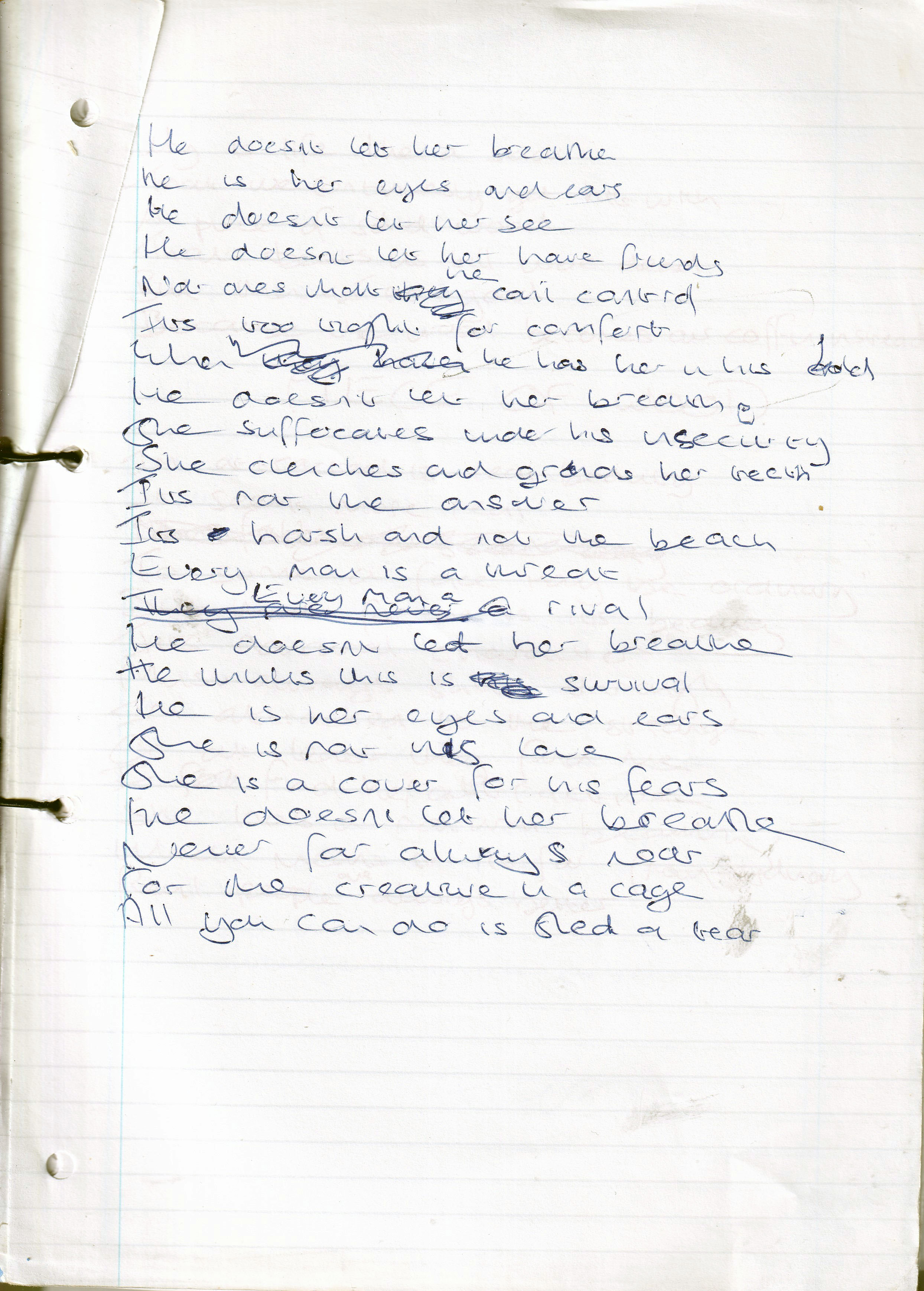He Doesn’t Let Her Breathe – Written January 2001 (Aged 25)