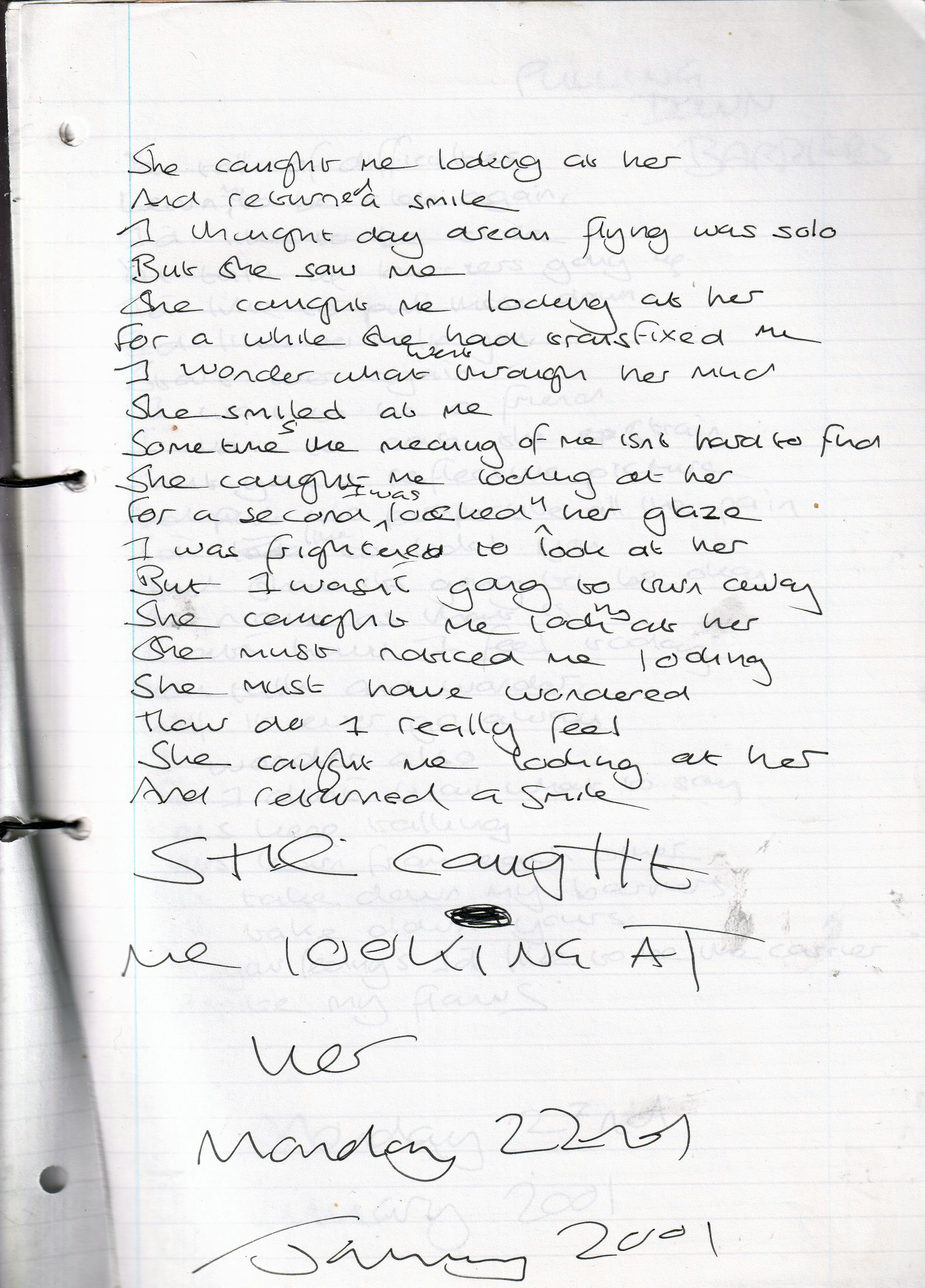 She Caught Me Looking At Her – Written Monday 22nd January 2001 (Aged 25)