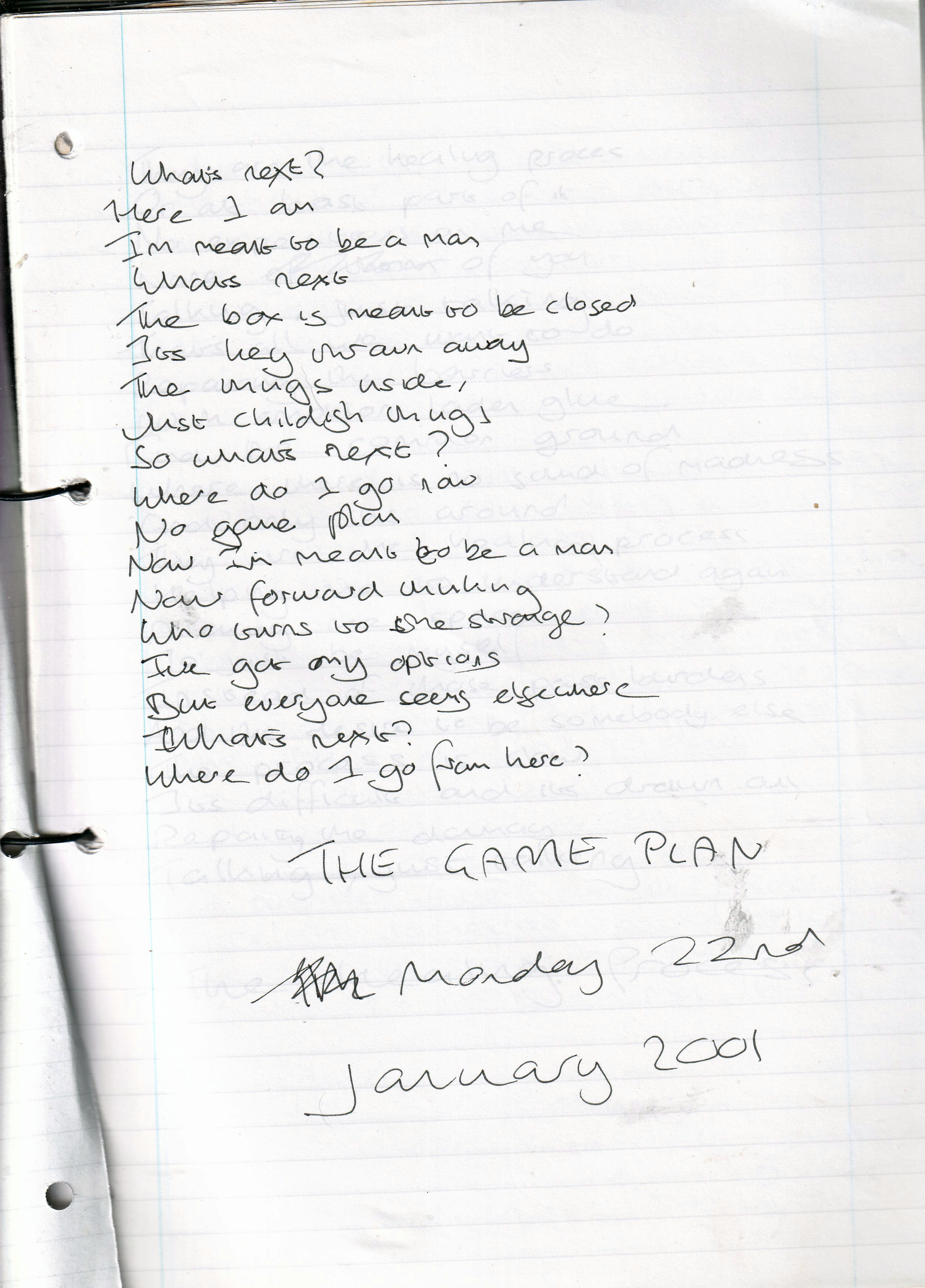 The Game Plan – Written Monday 22nd January 2001 (Aged 25)