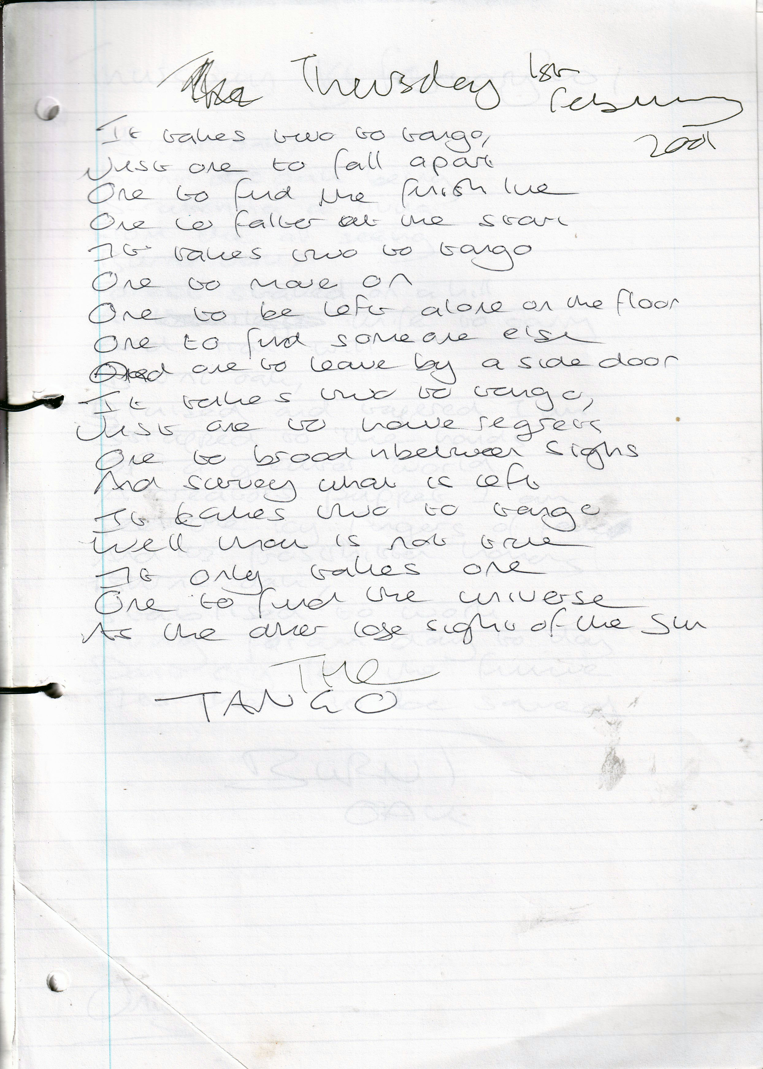 The Tango – Written Thursday 1st February 2001 (Aged 25)