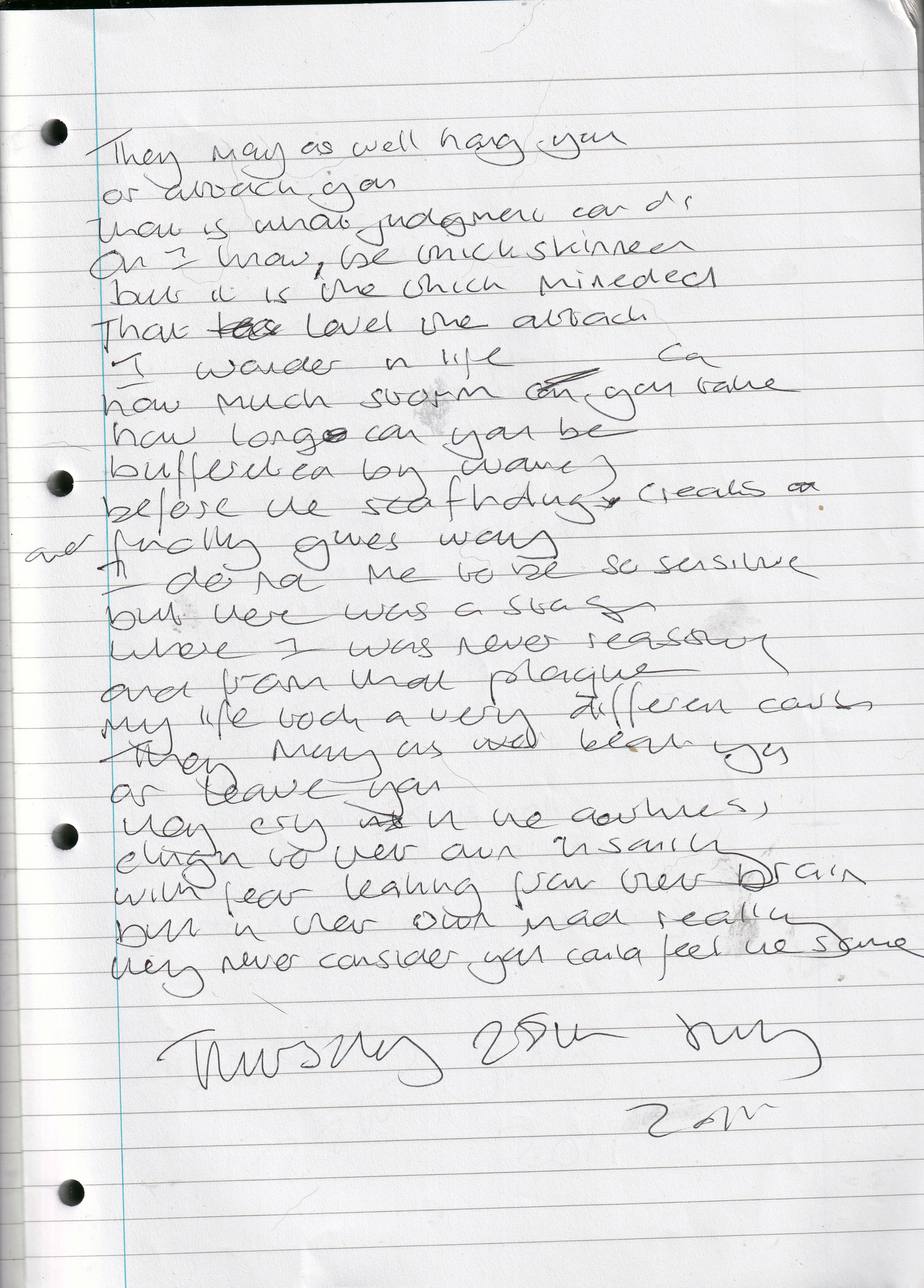 Thick Skinned – Written Thursday 28th July 2011 (Aged 36)