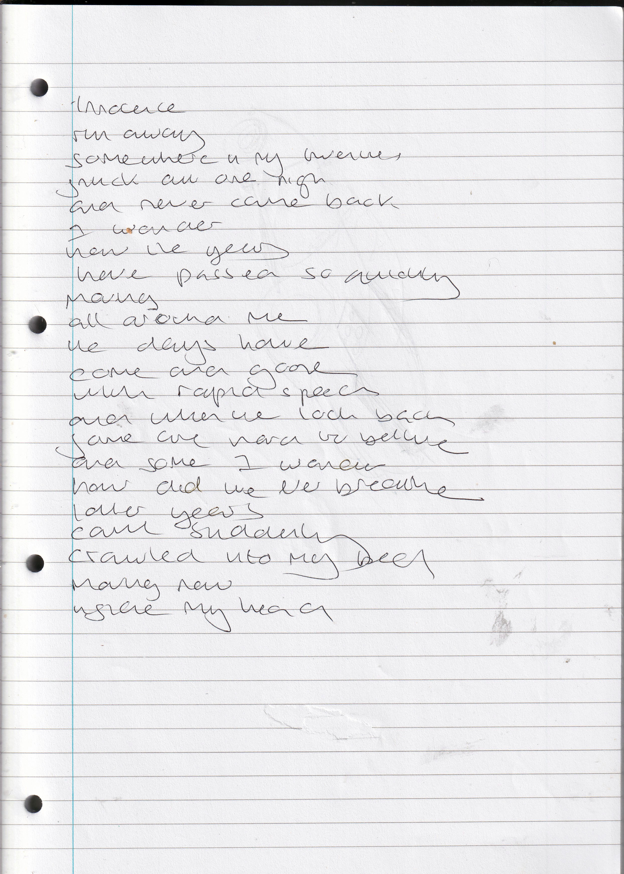 Innocence Ran Away – Written August 2011 (Aged 36)