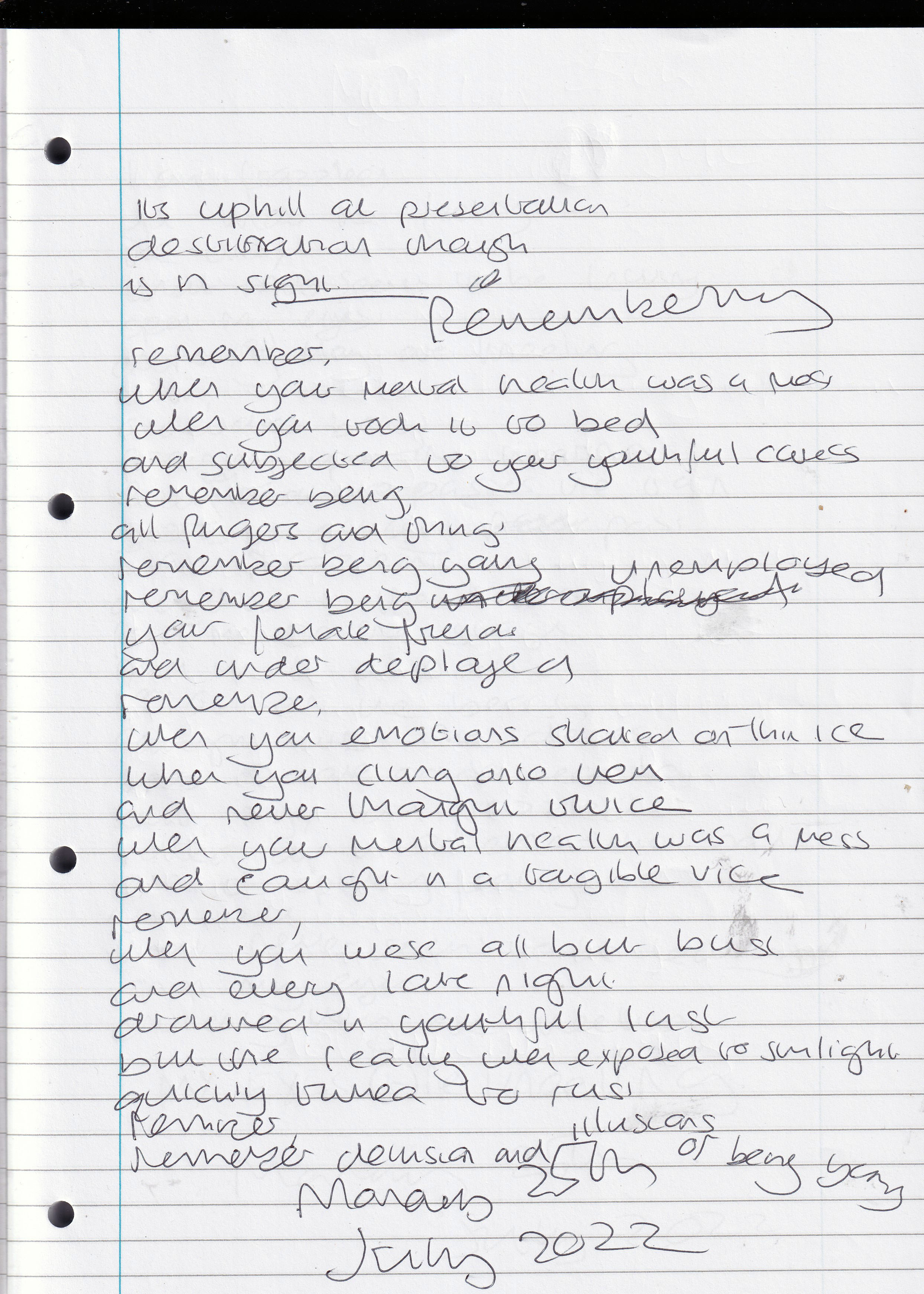 Remembering – Written Monday 25th July 2022 (Aged 47)