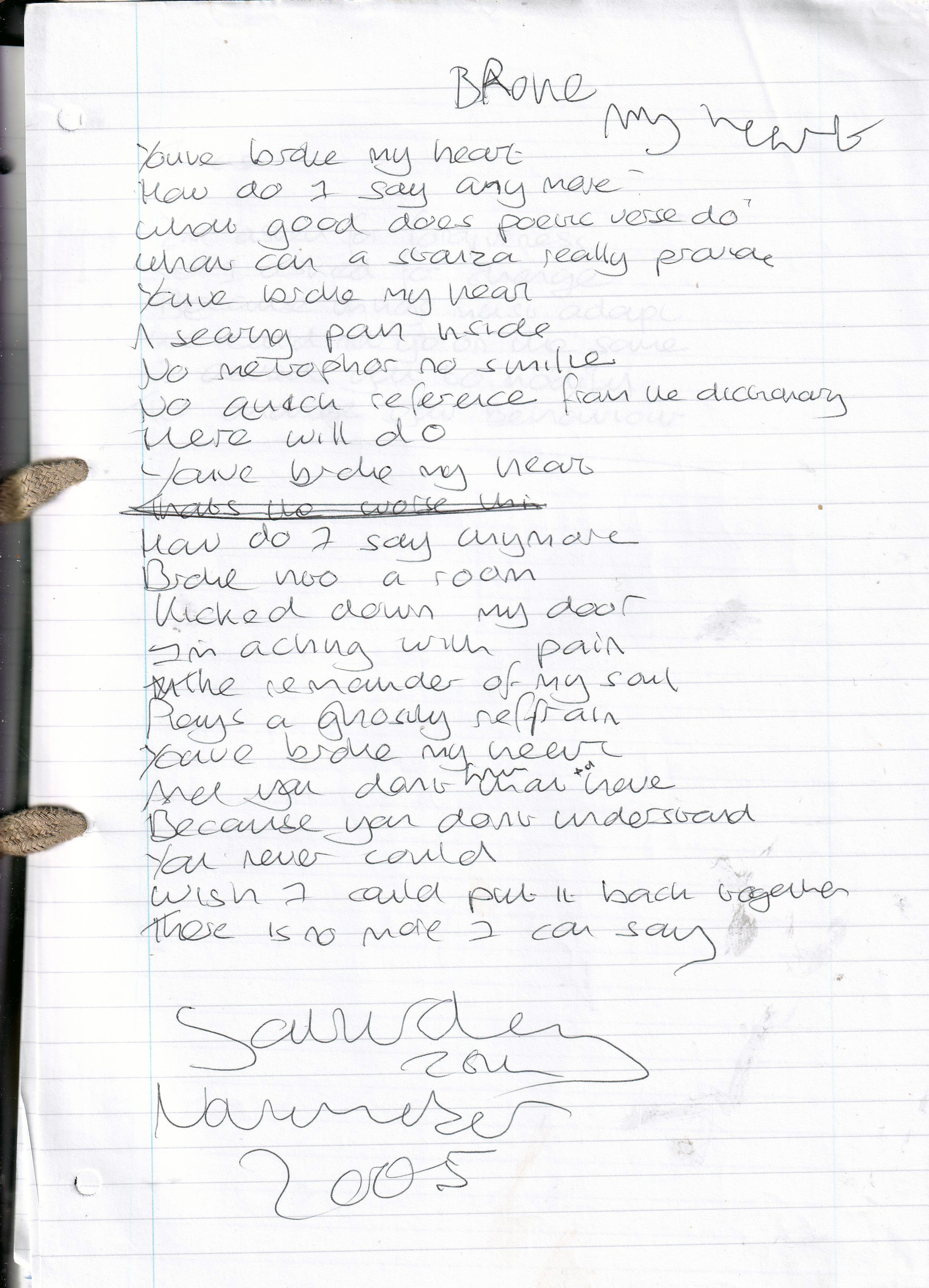 Broke My Heart – Written Saturday 26th November 2005 (Aged 30)