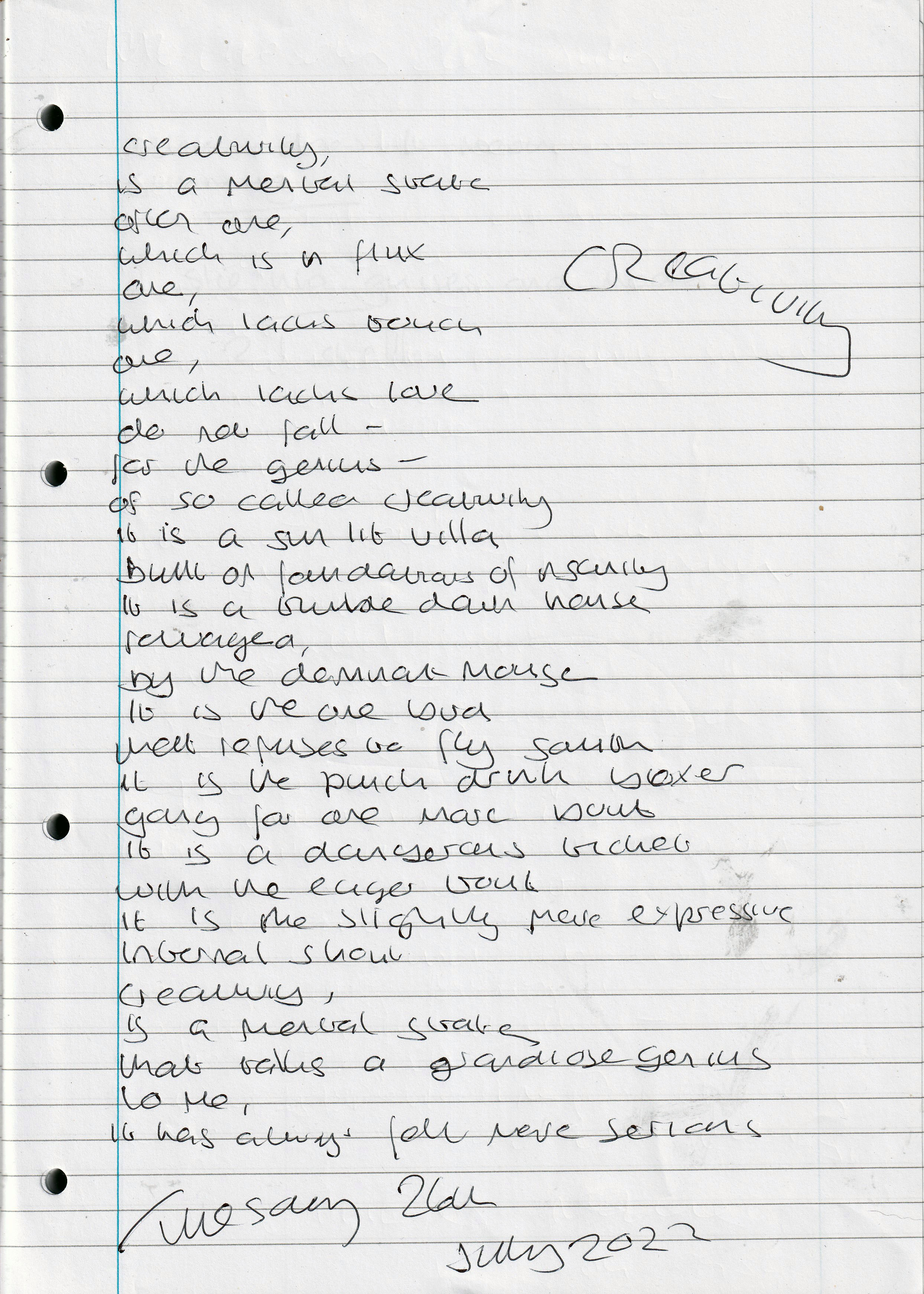 Creativity – Written Tuesday 26th July 2022 (Aged 47)