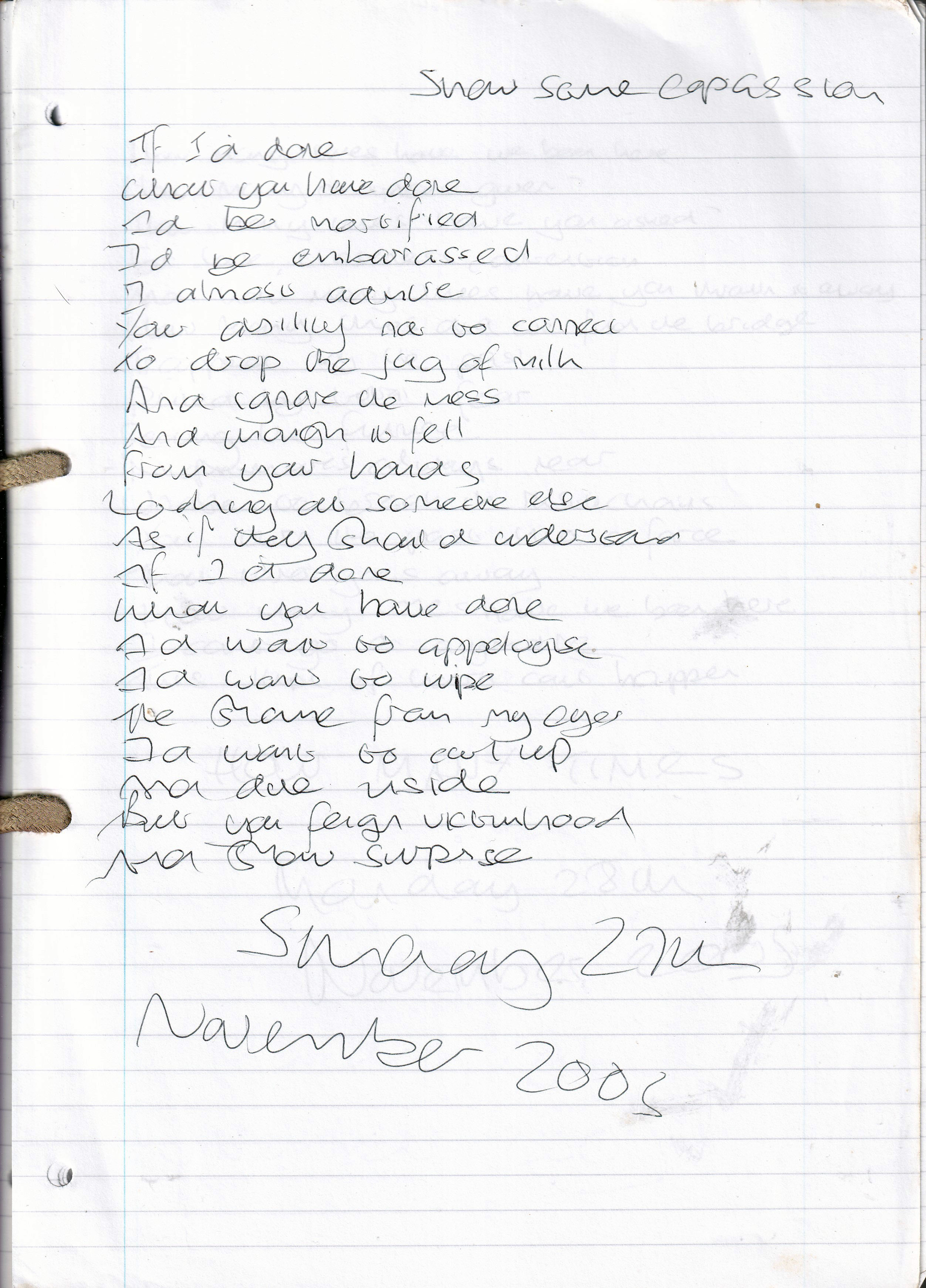 Show Some Compassion – Written Sunday 27th November 2005 (Aged 30)