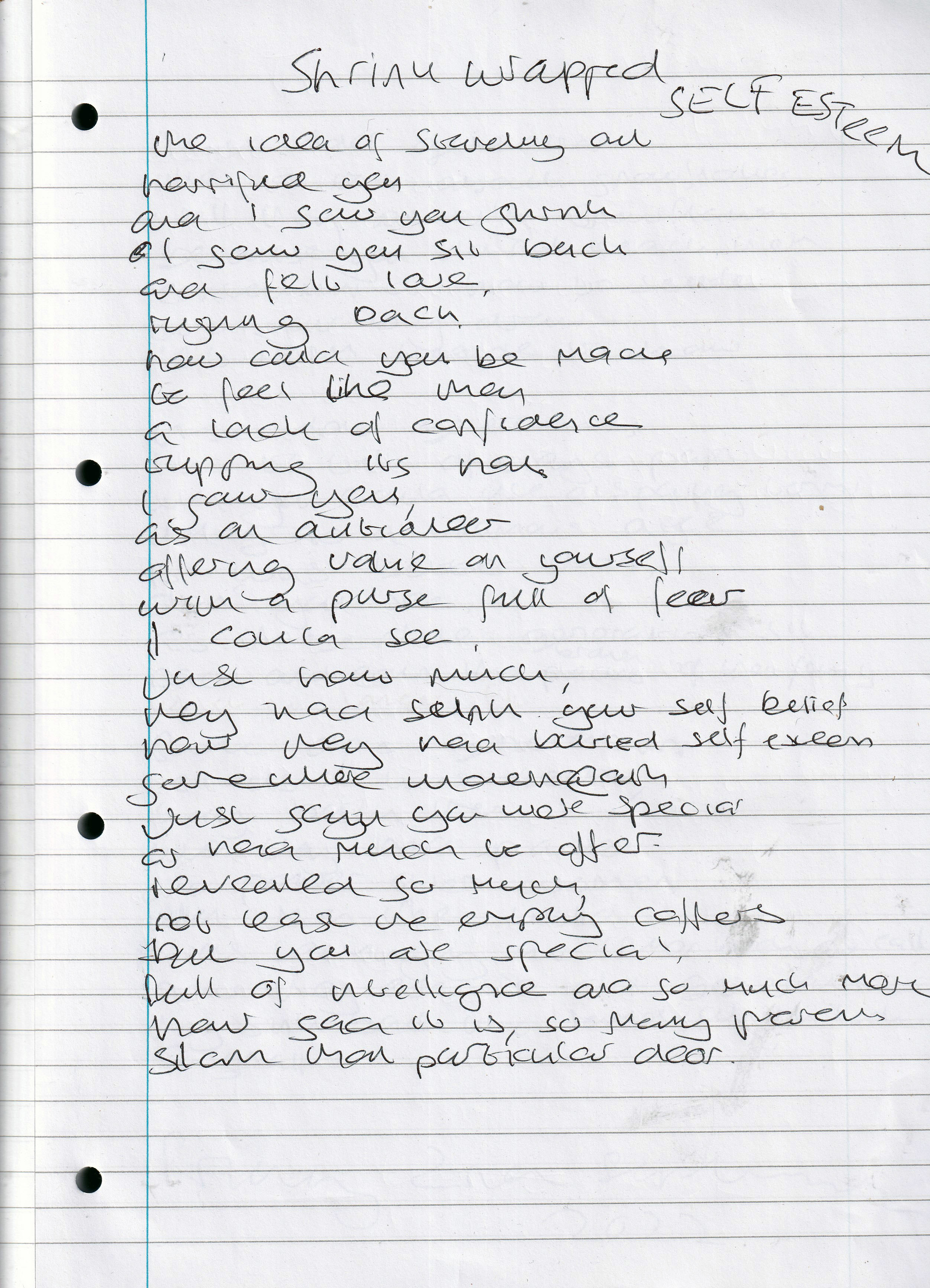 Shrink Wrapped Self Esteem – Written August 2022 (Aged 47)