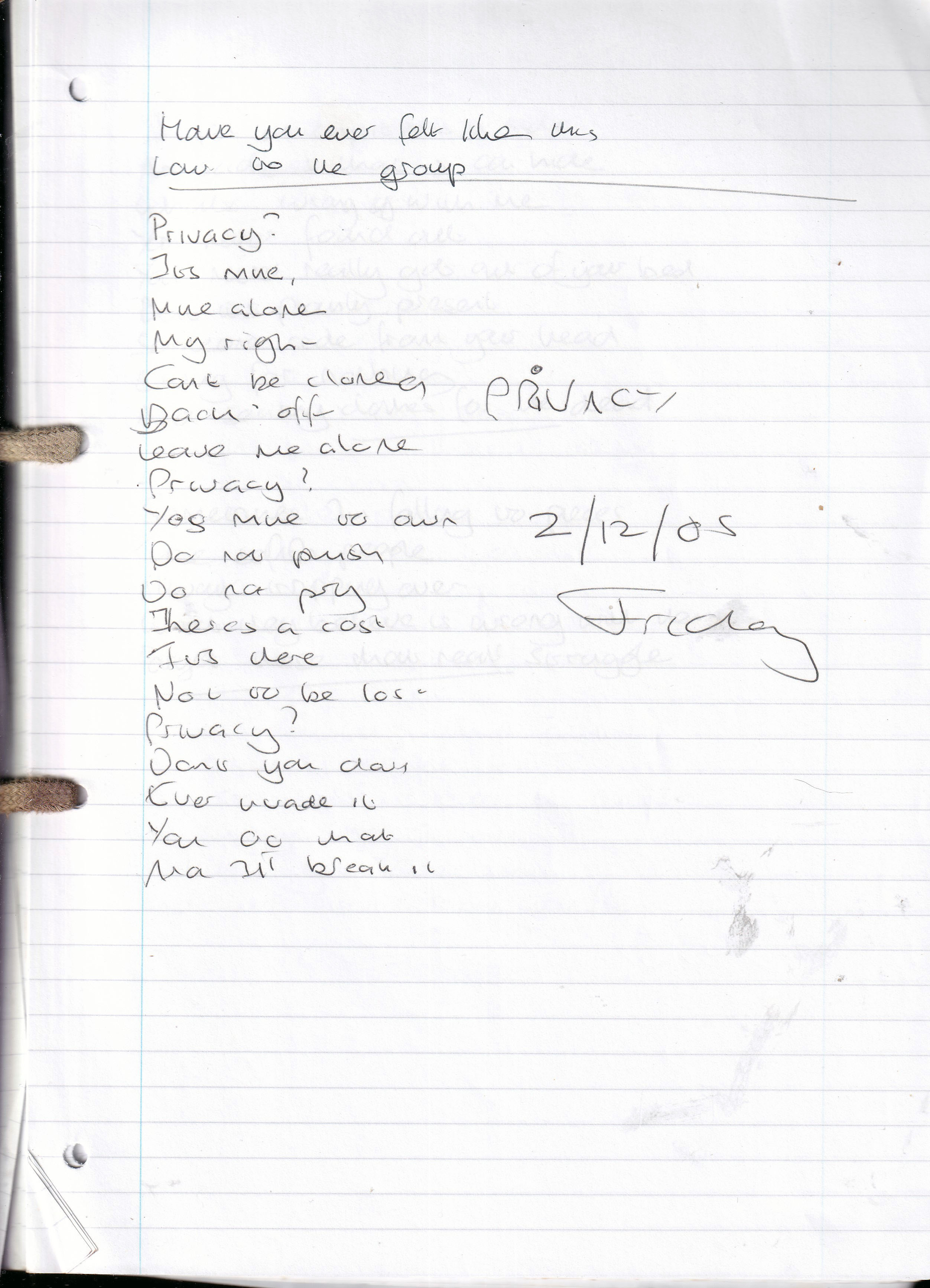 Privacy – Written Friday 2nd December 2005 (Aged 30)