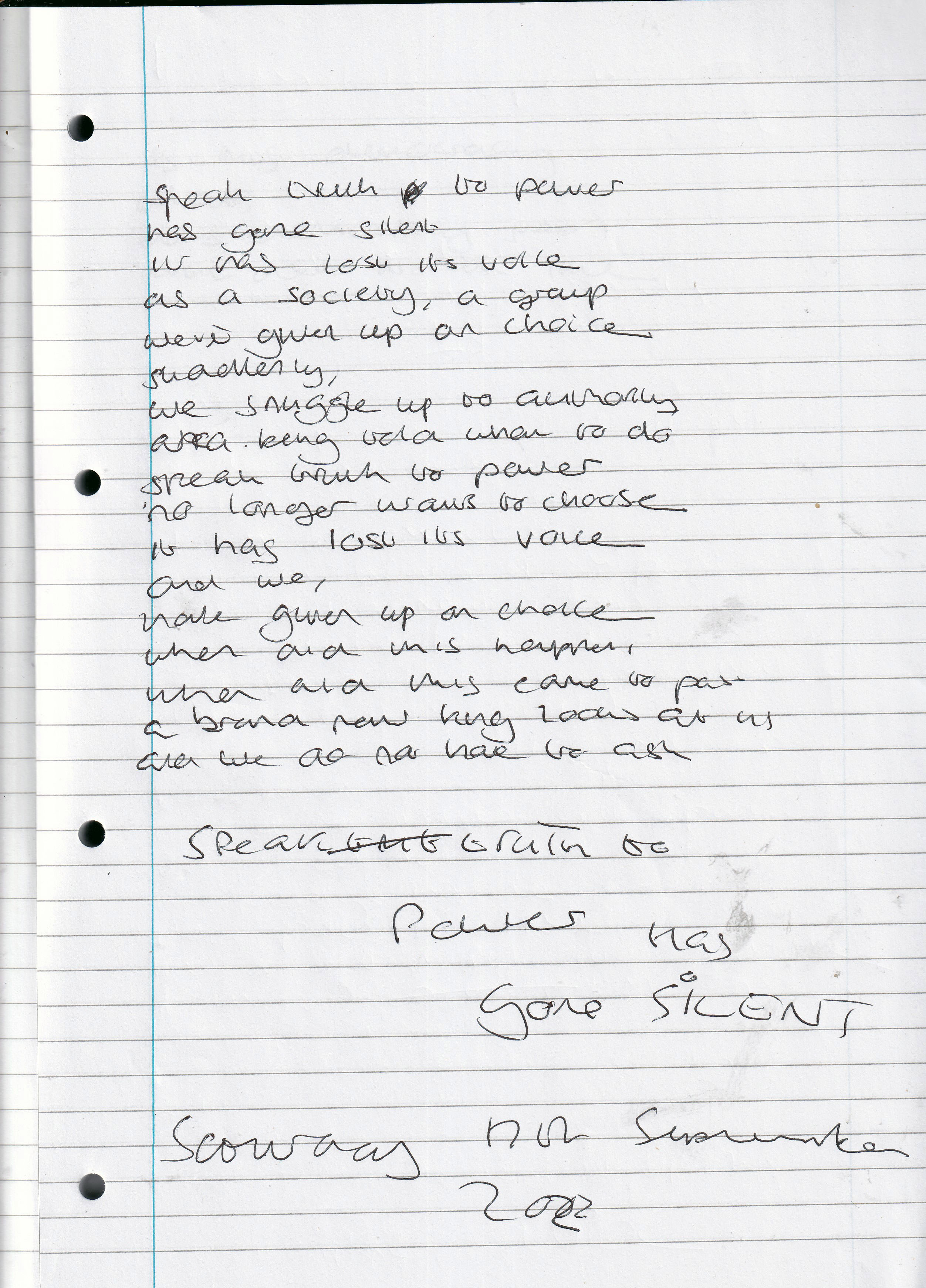 Speak Truth to Power Has Gone Silent – Written Saturday 17th September 2022 (Aged 22)